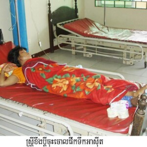 ចំណែកករណីមួយទៀត ស្ត្រីឈ្មោះឈៀន គីមហោ អាយុ៣០ឆ្នាំ ដោយសារតែខឹងនឹងប្តីឈ្មោះនៅ សៀត ហៅម៉ៅ ជាអ្នករត់ម៉ូតូឌុប គិតតែដើរផឹកស៊ីមិនជួយធ្វើការងារផ្ទះ ក៏ផឹកថ្នាំប៉ងសម្លាប់ខ្លួនដែរ ដោយផឹកថ្នាំបាញ់កក់ ឈ្មោះពី ដូ កាលពីវេលាម៉ោង៨យប់ថ្ងៃទី២៦ ឧសភា ក្នុងលំនៅឋានដែលស្ថិតក្នុងភូមិក្រោលជីនោះដែរ នាងត្រូវបានដឹកមកសង្គ្រោះនៅមន្ទីរពេទ្យកាលពីវេលាម៉ោង១០យប់ ។ ក្រុមគ្រួសារមិនបានផ្តល់ព័ត៌មានឱ្យបានជាក់លាក់ទេ គ្រាន់តែប្រាប់គ្រូពេទ្យថា នាងបានផឹកថ្នាំបាញ់កក់ ឈ្មោះពី ដូ ព្រោះខឹងនឹងប្តីមិនជួយធ្វើកិច្ចការផ្ទះ ។ ទោះជាយ៉ាងណា ស្ត្រីទាំងពីរនាក់ខាងលើកំពុងស្ថិតក្នុងការសង្គ្រោះរបស់ក្រុមគ្រូពេទ្យខេត្តយ៉ាងយកចិត្តទុកដាក់ ៕