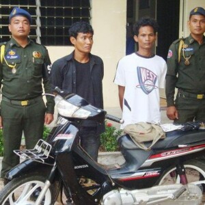 ខេត្តកំពង់ឆ្នាំង ៖ ជនសង្ស័យចំនួន២នាក់ត្រូវកងរាជអាវុធហត្ថខេត្តព័ទ្ធមួយយប់ទល់ភ្លឺទើបចាប់បាននៅវេលាម៉ោង៦ និង១០នាទីព្រឹក ថ្ងៃទី២៧ ខែឧសភា នៅជិតផ្សារពន្លៃ ក្នុងស្រុកបរិបូណ៌ ខណៈពួកគេព្យាយាមជិះម៉ូតូគេចចេញពីការតាមចាប់របស់កងរាជអាវុធហត្ថ ។ ក្នុងចំណោមជនសង្ស័យទាំង២នោះ ម្នាក់ឈ្មោះឡុង ដែលបានបាញ់បុរសម្នាក់ដែលទារលុយជំពាក់នៅប៉ោយប៉ែតកាលពីថ្ងៃទី២៦ ឧសភា ។