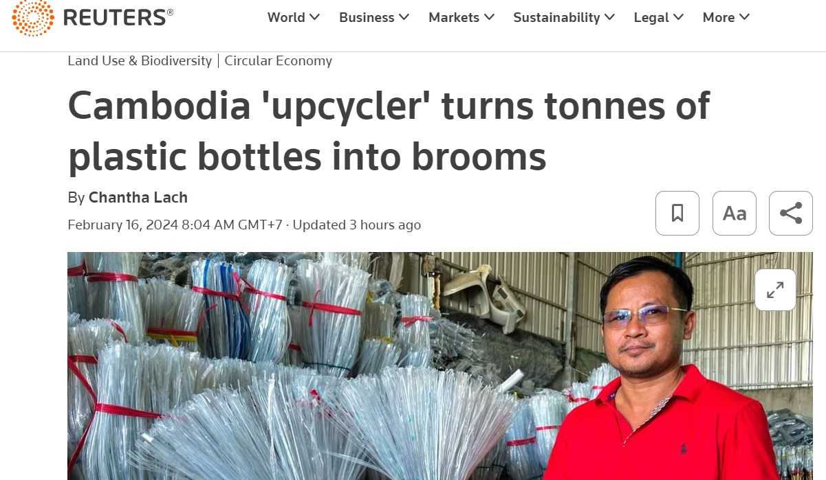 សារព័ត៌មាន reuters បានចុះទៅយកព័ត៌មាននៅសិប្បកម្មដោយផ្ទាល់ និងដាក់ចំណងជើងថា Cambodia ‘upcycler’ turns tonnes of plastic bottles into brooms ដែលបានចុះផ្សាយនៅព្រឹកថ្ងៃទី១៦ ខែកុម្ភៈ ឆ្នាំ២០២៤។