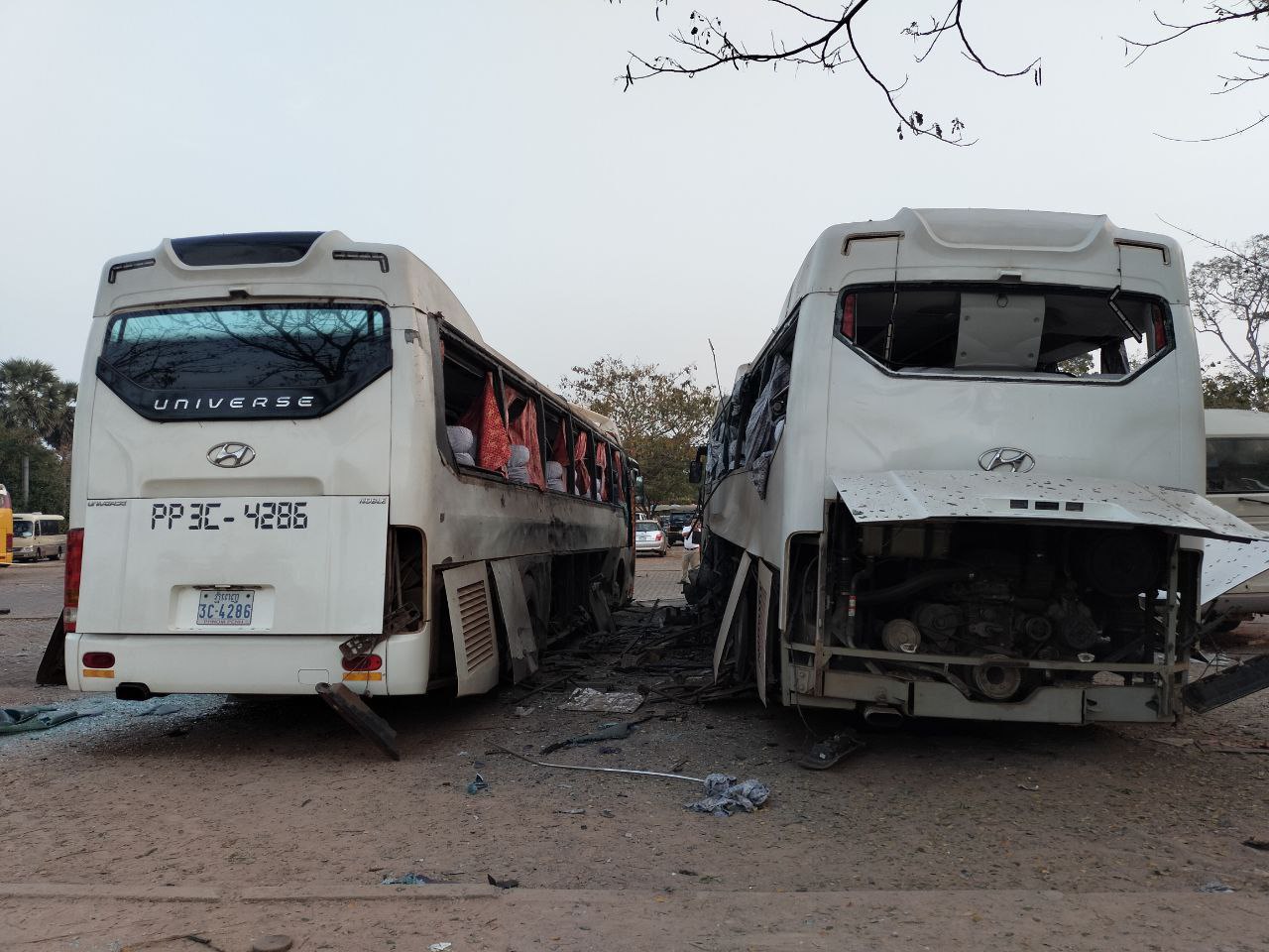 ខេត្តសៀមរាប ៖ តាមសេចក្ដីរាយការណ៍បឋមពីសមត្ថកិច្ចបានឱ្យដឹងនៅព្រឹកថ្ងៃទី៥ ខែមីនា ឆ្នាំ២០២៤នេះថា រថយន្តក្រុងដឹកភ្ញៀវទេសចរណ៍ចំនួន៤គ្រឿង មកទស្សនាថ្ងៃរះ នៅមុខប្រាសាទអង្គរ ដែលចតរង់ចាំភ្ញៀវចេញមកវិញ ស្រាប់តែផ្ទុះដោយមិនដឹងមូលហេតុ បណ្ដាលឱ្យខូចខាតយ៉ាងដំណំ និងរងរបួសមនុស្សម្នាក់ផងដែរ ។