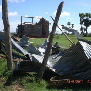 ខេត្តកំពង់ឆ្នាំង ៖ ផ្ទះតូចធំចំនួន១៨ខ្នង ត្រូវបានខ្យល់ព្យុះបោកបក់បណ្តាលឱ្យខ្លះរលំ ខ្លះហក់ធ្លាក់ពីលើជើងតាងអុកបាក់ខ្ទេចទាំងស្រុង ខ្លះរបើកដំបូលនិងមានដើមឈើរួមទាំងដើមត្នោតផង ក៏រលំបាក់ដល់ដីដែរ ។ ហេតុការណ៍នេះបានកើតឡើងនៅវេលាម៉ោង៤ និង៣០នាទីរសៀល ថ្ងៃទី១ មិថុនា នៅក្នុងភូមិត្រពាំងសំរោង ឃុំលង្វែក ស្រុកកំពង់ត្រឡាច ។