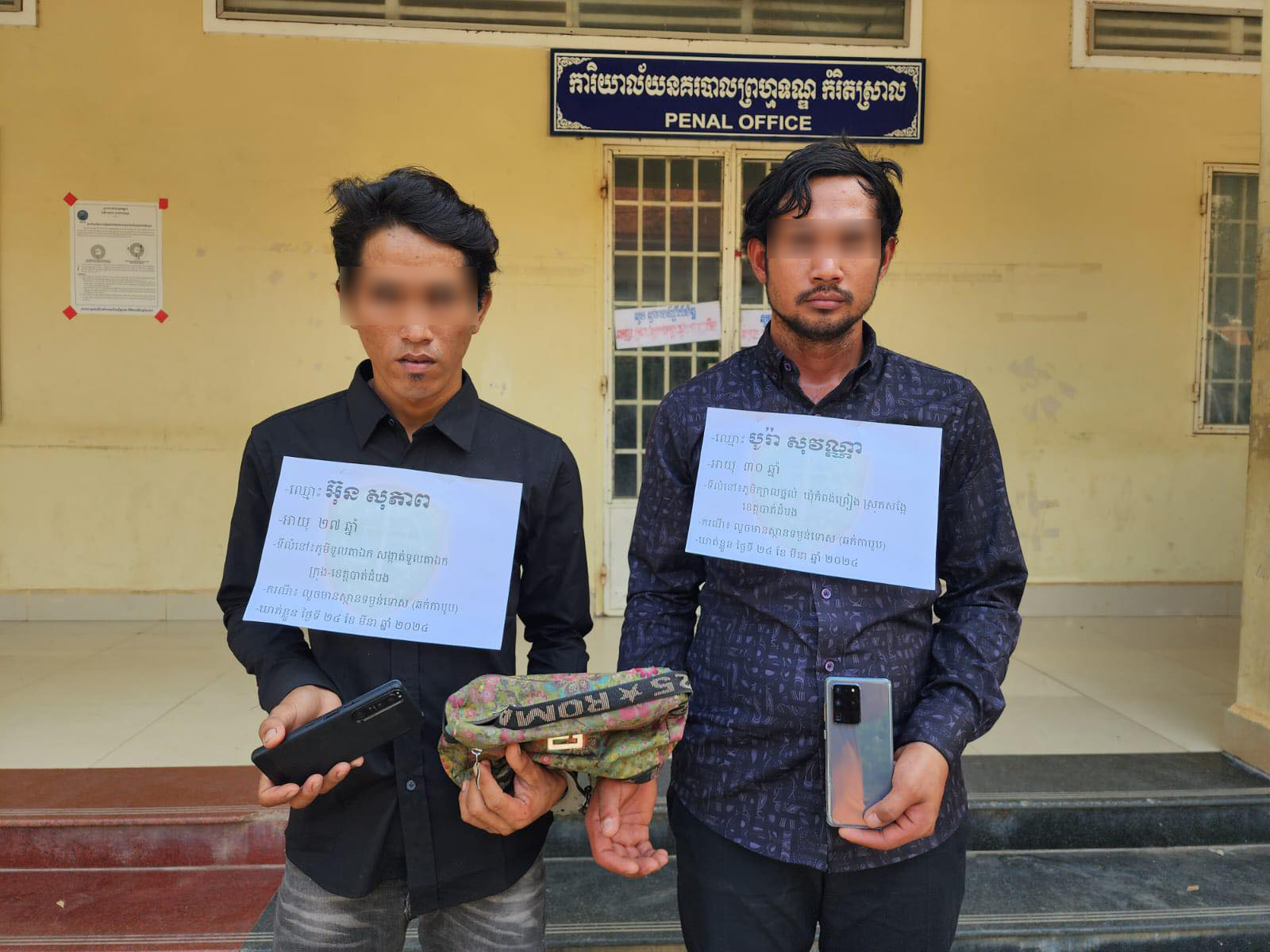 នៅចំពោះសមត្ថកិច្ច ជនដៃដល់ឈ្មោះ បូរ៉ា សុវណ្ណា ហៅ វ៉ាន់ ធ្លាប់ជាប់គុកចំនួន០៤ដង រាប់ទាំងលើកនេះម្ដងទៀតចំនួន០៥ដង។ ដោយឡែក ឈ្មោះ អ៊ុន សុភាព ធ្លាប់ជាប់គុកចំនួន០២ដង រាប់ទាំងលើកនេះម្ដងទៀតគឺចំនួន០៣ដងហើយ តែពួកគេមិនព្រមរាងចាលឡើយ ពេលចេញពីគុក ពួកគេនៅតែចាប់យកអាជីពធ្វើចោរដដែល»។