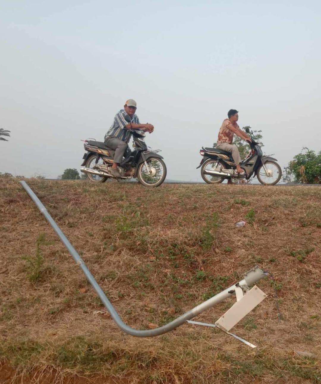 ខេត្តបាត់ដំបង ៖ បង្គោលភ្លើងសូឡាដែលជាអំណោយរបស់ក្រុមការងារគណបក្សប្រជាជន ដែលដាក់ពង្រាយបំភ្លឺតាមដងផ្លូវយ៉ាងតិច០៩ដើមក្នុងចំណោមជាង១៥០ដើម ត្រូវក្រុមជនអន្ធពាលកាច់បំបាក់វាយកម្ទេចចោល ដែលគេសង្ស័យអាចកើតឡើងនៅវេលារំលងអធ្រាត្រ ឈានចូលថ្ងៃទី២៦ មីនា នៅលើដងផ្លូវកៅស៊ូក្នុងចន្លោះទឹកដីភូមិសំបួរមាស ឃុំស្នឹង ដល់ព្រំប្រទល់ទឹកដី ឃុំចែងមានជ័យ ស្រុកបាណន់។