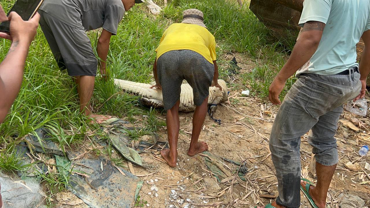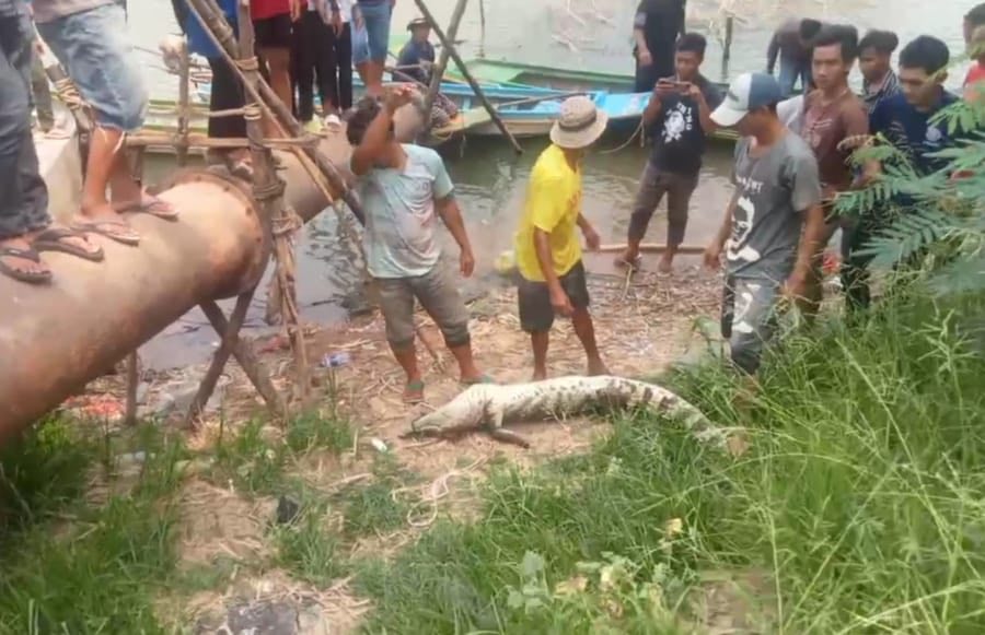ខេត្តបាត់ដំបង៖ សមត្ថកិច្ច និងមន្ត្រីជំនាញបានចំណាយពេលប្រមាណ៦ម៉ោង ក្នុងការតាមចាប់សត្វក្រពើមួយក្បាលមានទម្ងន់ប្រហែល៥០គីឡូក្រាម ដែលប្រជាពលរដ្ឋប្រទះឃើញបណ្ដែតខ្លួននៅក្នុងដងស្ទឹងសង្កែ កាលពីព្រឹកថ្ងៃទី២៦ មិនា នៅចំណុចភូមិស្វាយជ្រុំ ឃុំព្រែកនរិន្ទ ស្រុកឯកភ្នំ ដែលគេអះអាងថា ជាសត្វក្រពើរួចចេញពីក្នុងទ្រុងអ្នកចិញ្ចឹម ។