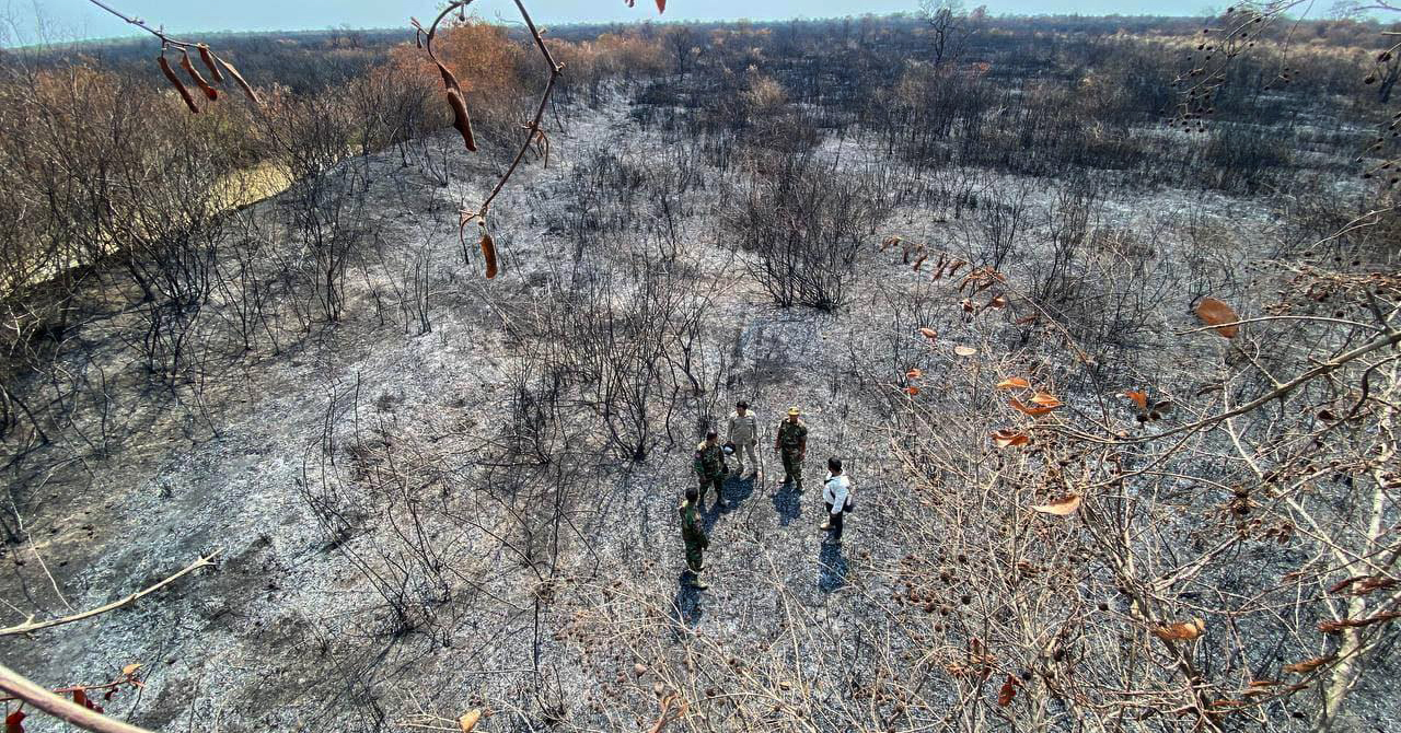 ខេត្តបាត់ដំបង ៖ តំបន់ព្រៃលិចទឹកជាង៥៦០ហិចតានៅក្នុងស្រុកថ្មគោល និងជាង២០ហិកតាទៀត នៅក្នុងស្រុកមោងប្ញស្សីត្រូវបានភ្លើងឆេះអស់គ្មានសល់ ដែលកម្លាំងចម្រុះ តាមបណ្ដាស្រុកទាំងពីរនេះចុះល្បាតប្រទះឃើញ កាលពីថ្ងៃទី០៨ មេសា តែគេមិនទាន់រកឃើញមូលហេតុ ដែលនាំឲ្យមានភ្លើងព្រៃនេះកើតឡើងនោះទេ ។ នេះបើតាមសេចក្ដីរាយការណ៏ពីកម្លាំងសមត្ថកិច្ចដែលបានចុះទៅកាន់កន្លែងកើតហេតុនីមួយៗ។