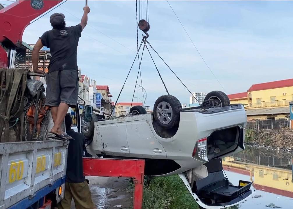 ក្រោយកើតហេតុ ស្ត្រីជាម្ចាស់រថយន្តបានទាក់ទងហៅរថយន្តស្ទូច ដើម្បីយករថយន្តទៅជួសជុលខ្លួនឯង ៕