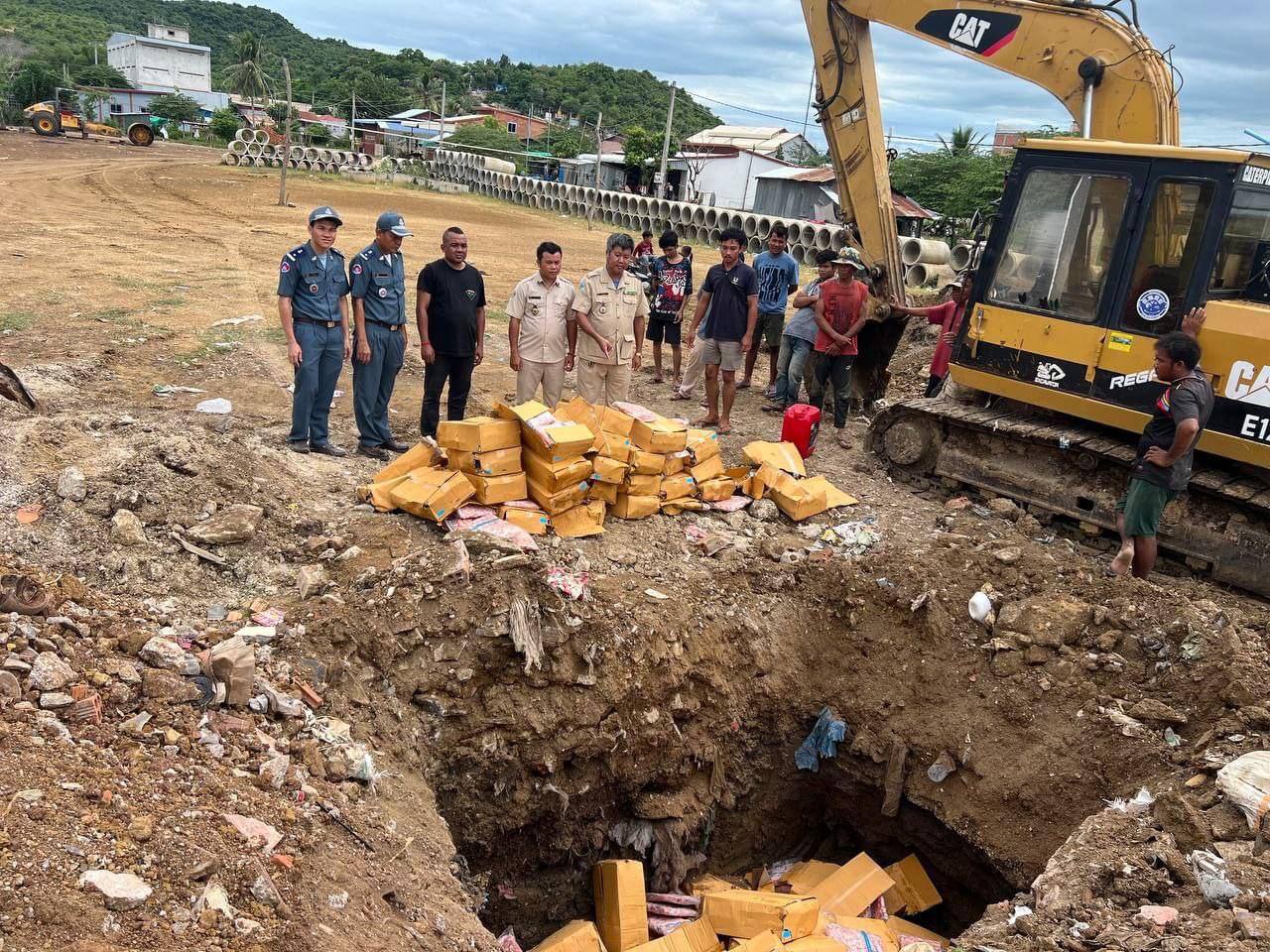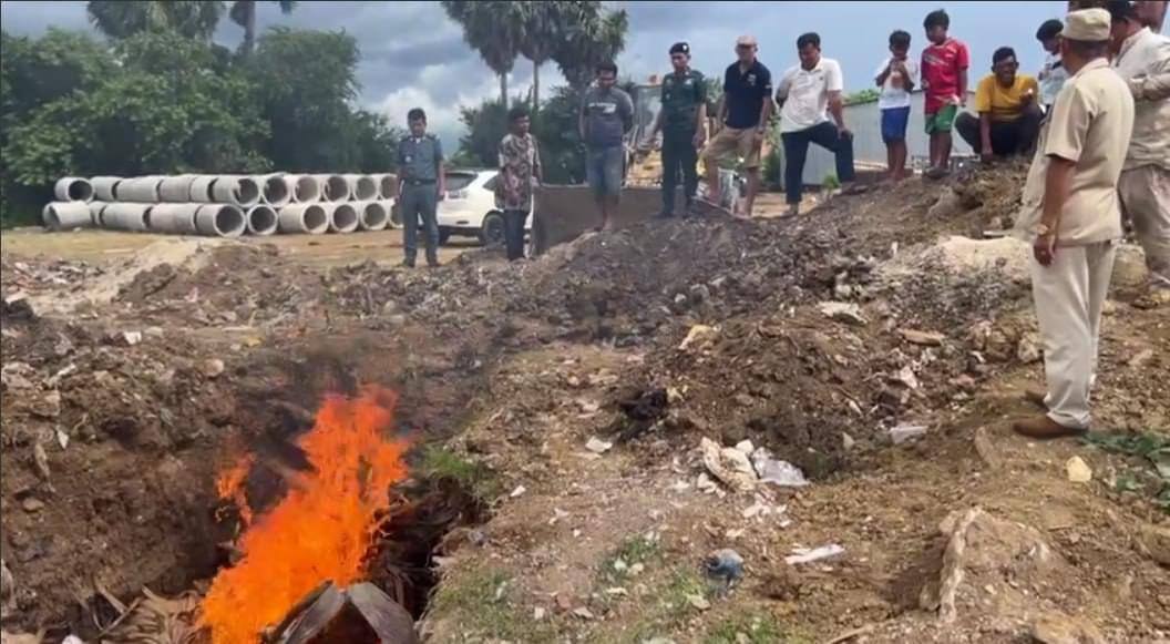 បន្ទាយមានជ័យ ៖ មន្ត្រីគយ និងរដ្ឋករតំបន់៥ និងមន្ត្រីពេទ្យសត្វបង្ក្រាប២ករណី ចាប់បានជើងទា និងចុងស្លាបមាន់ បង្កក លក់ទម្ងន់៤តោន ត្រូវបានដុតកម្ទេចចោល នៅជាយក្រុងសិរីសោភ័ណ ខេត្តបន្ទាយមានជ័យ ។