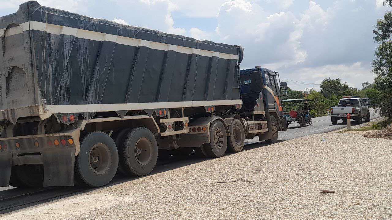 និងទី៣. រថយន្តម៉ាក DEA WOO ពាក់ស្លាកលេខខេមរភូមិន្ទ 3-1883 ដឹកខ្សាច់ថ្ម ខូចខាតផ្នែកខាងមុខ ។