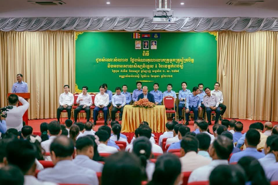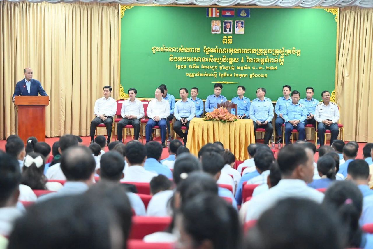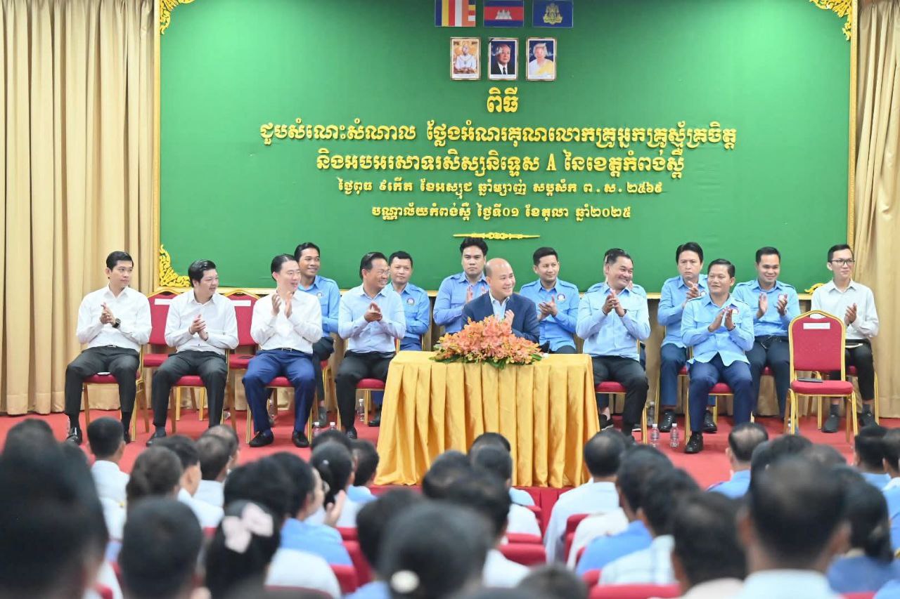 ខេត្តកំពង់ស្ពឺ ៖ កាលពីព្រឹកថ្ងៃទី១ ខែតុលា ឆ្នាំ២០២៥ ឯកឧត្តម ហ៊ុន ម៉ានី ឧបនាយករដ្ឋមន្ត្រី រដ្ឋមន្ត្រីក្រសួងមុខងារសារណៈ និងជាប្រធានក្រុមការងារចុះមូលដ្ឋានខេត្តកំពង់ស្ពឺ បានអញ្ជើញជួបសំណេះសំណាល និងថ្លែងអំណរគុណលោកគ្រូអ្នកគ្រូបង្រៀនវគ្គបំប៉នស្ម័គ្រចិត្ត និងអបអរសាទរចំពោះសិស្សនិទ្ទេស A ប្រឡងសញ្ញាបត្រមធ្យមសិក្សាទុតិយភូមិ ក្នុងឆ្នាំសិក្សា២០២៤-២០២៥ នាសម័យប្រឡង ២៨ សីហា ២០២៥ ។
