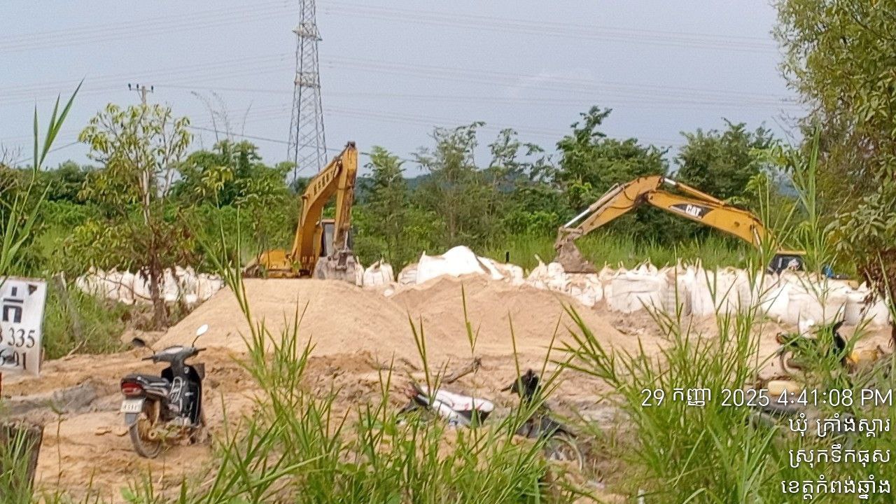 ខេត្តកំពង់ឆ្នាំង ៖ ការដ្ឋានបូមខ្សាច់មួយកន្លែងកំពុងប្រើគ្រឿងចក្រ និងរថយន្តច្រើនគ្រឿងដឹកបាវខ្សាច់ធំៗយកមកដាក់ទូរថភ្លើង ហើយដឹកចេញទៅក្រៅខេត្ត ដែលតាមព័ត៌មានពីក្រុមកម្មករថា ដឹកយកទៅខេត្តព្រះសីហនុ ។ ទីតាំងបូមខ្សាច់មួយកន្លែងនេះស្ថិតនៅចំណុចអូរឡេងតេង ស្ថិតនៅក្នុងភូមិក្រាំងស្គា…