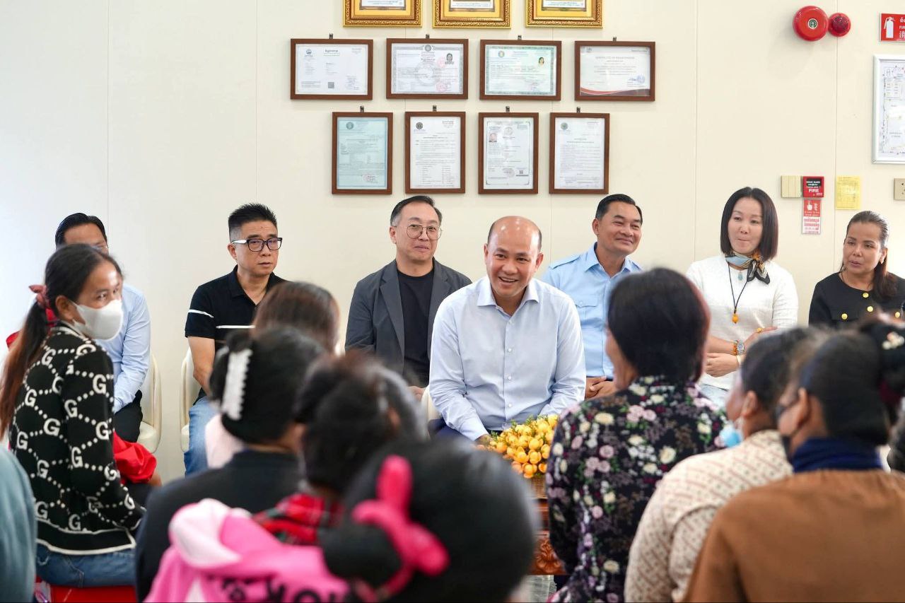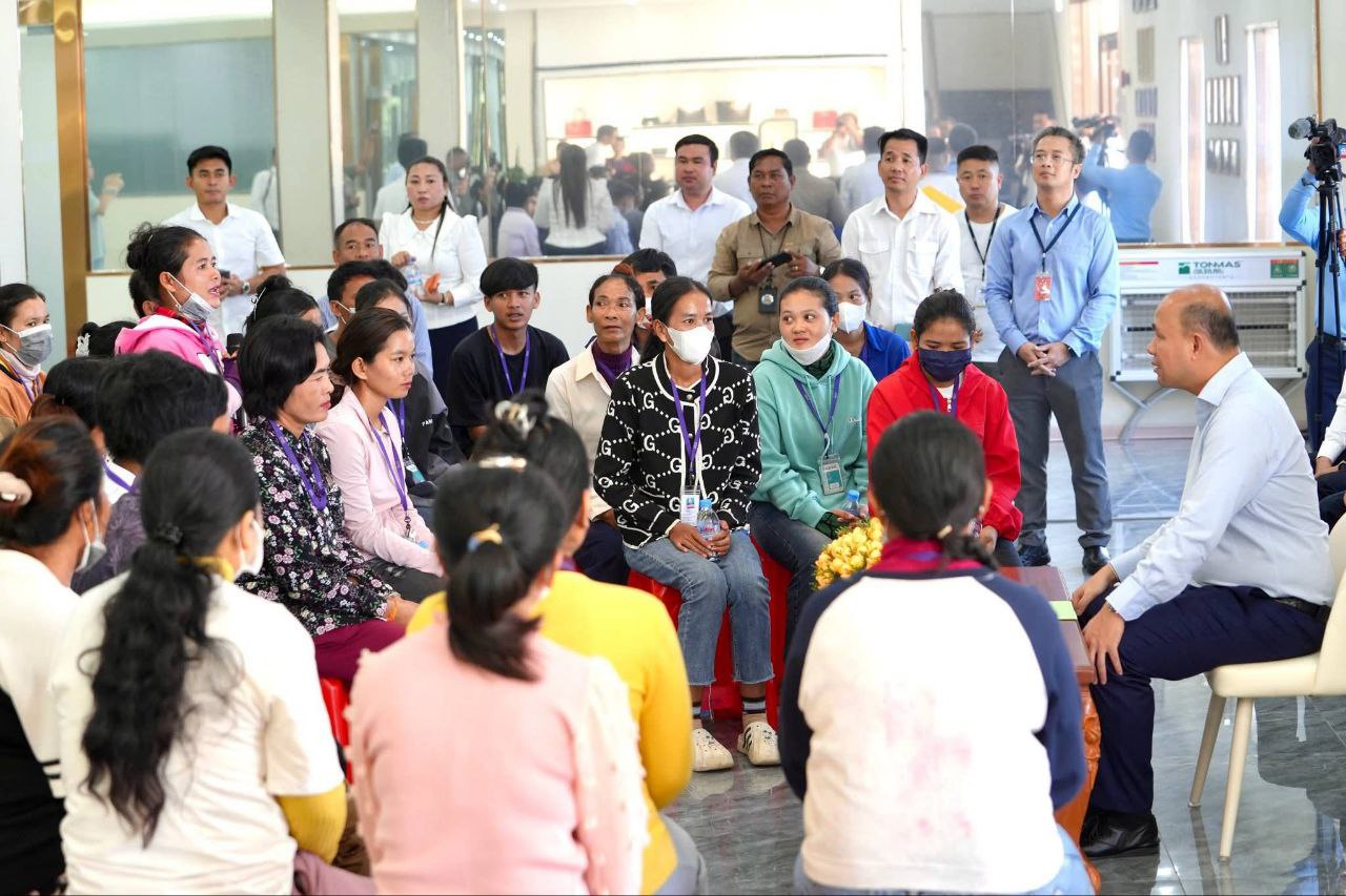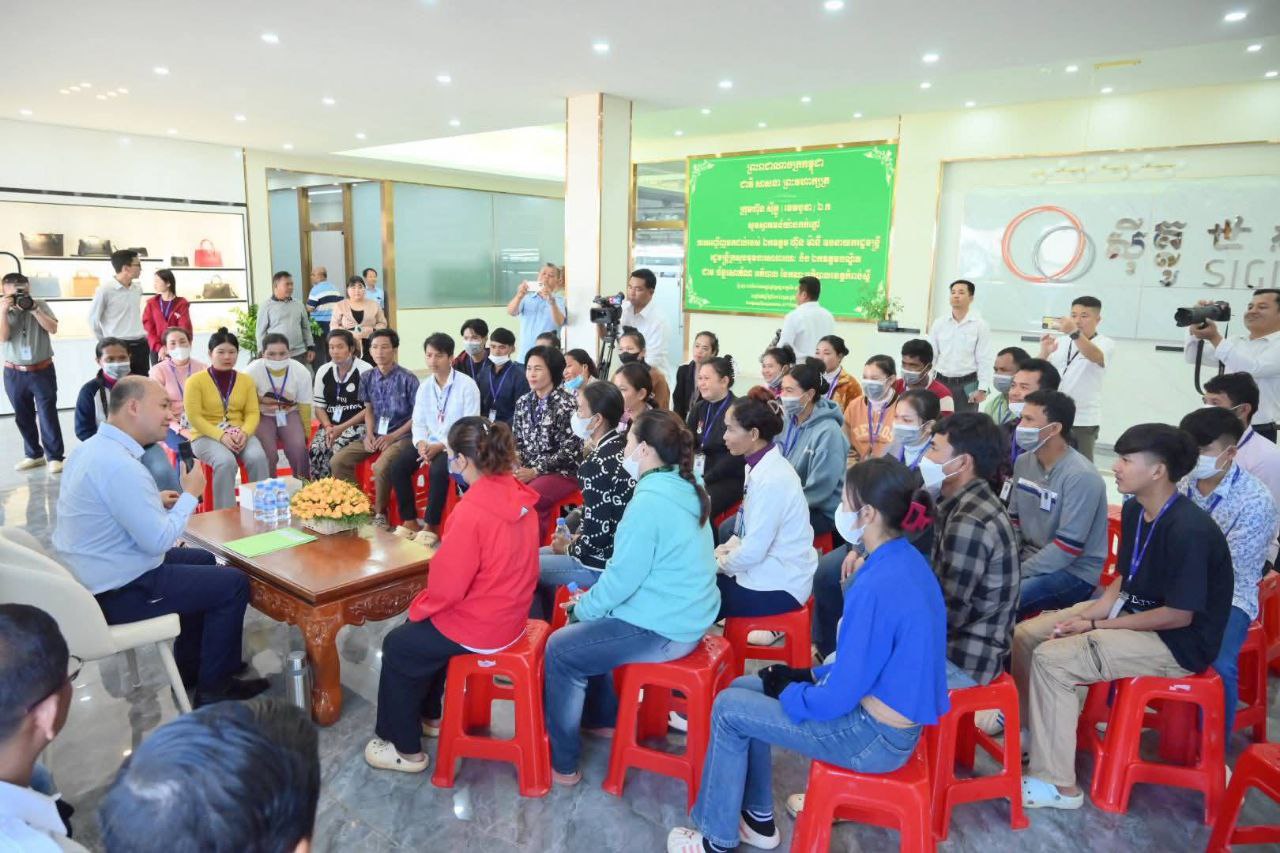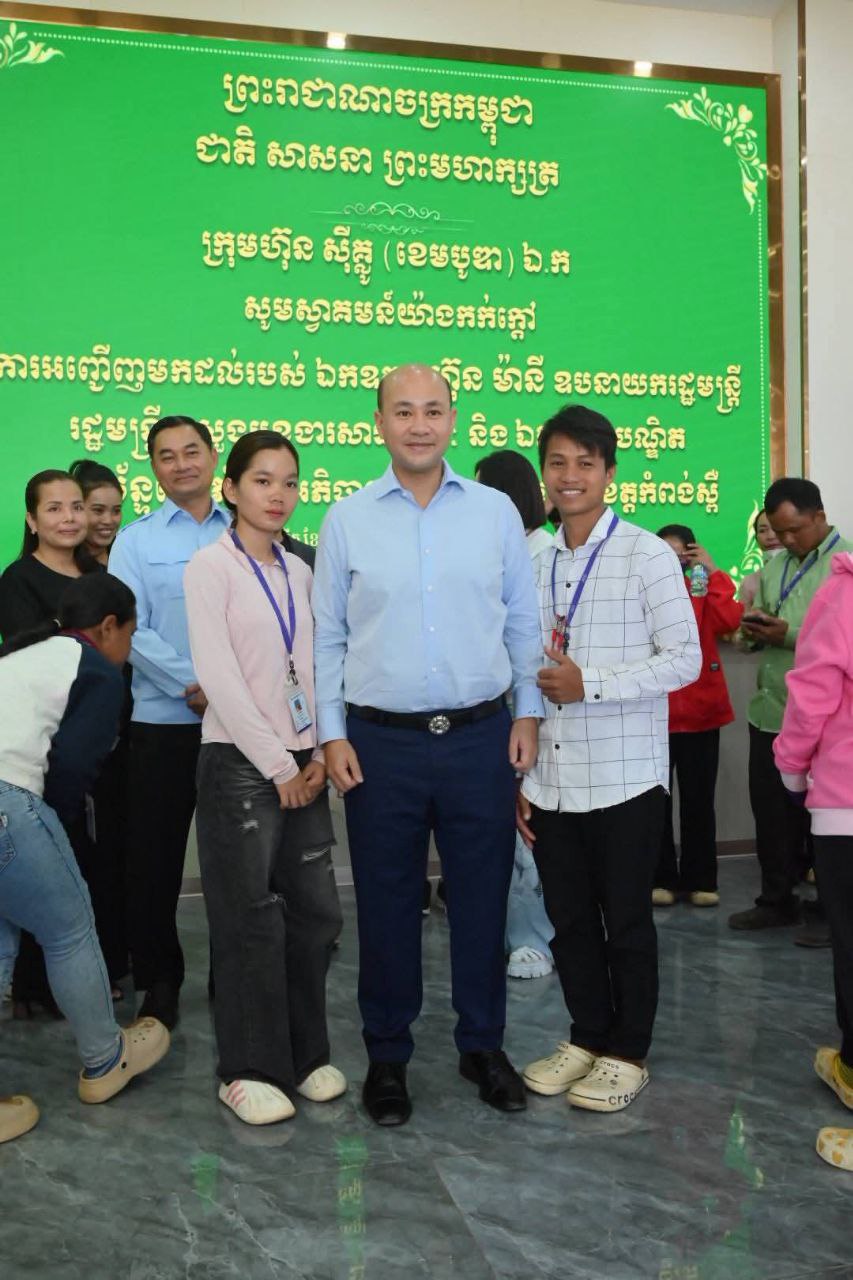 ខេត្តកំពង់ស្ពឺ៖ ឯកឧត្តម ហ៊ុន ម៉ានី ឧបនាយករដ្ឋមន្ត្រី រដ្ឋមន្ត្រីក្រសួងមុខងារសាធារណៈ និងជាប្រធានក្រុមការងាររាជរដ្ឋាភិបាលចុះជួយខេត្តកំពង់ស្ពឺ បានអញ្ជើញជួបសំណេះសំណាលជាមួយអតីតពលករចំណាកស្រុកដែលកំពុងបម្រើការនៅក្នុងរោងចក្រយីហោស៊ីគ្លូ ខេត្តកំពង់ស្ពឺ នៅរសៀលថ្ងៃទី០១ ខែតុលា ឆ្នាំ២០២៥នេះ ។