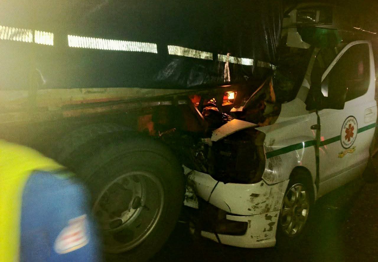 ខេត្តកំពង់ស្ពឺ ៖ បុរសម្នាក់បានស្លាប់ក្រោយពេលបញ្ជូនយកទៅសង្គ្រោះនៅមន្ទីរពេទ្យបង្អែកខេត្តកំពង់ស្ពឺ និងមនុស្សប្រុស-ស្រីចំនួន៥នាក់ផ្សេងទៀតបានរងរបួសធ្ងន់-ស្រាល ខណៈដែលរថយន្តសាមុយ(AMBULANCE) បើកបុកពីក្រោយរថយន្តដឹកទំនិញធុនធំនៅលើផ្លូវល្បឿនលឿនយ៉ាងពេញទំហឹង ។