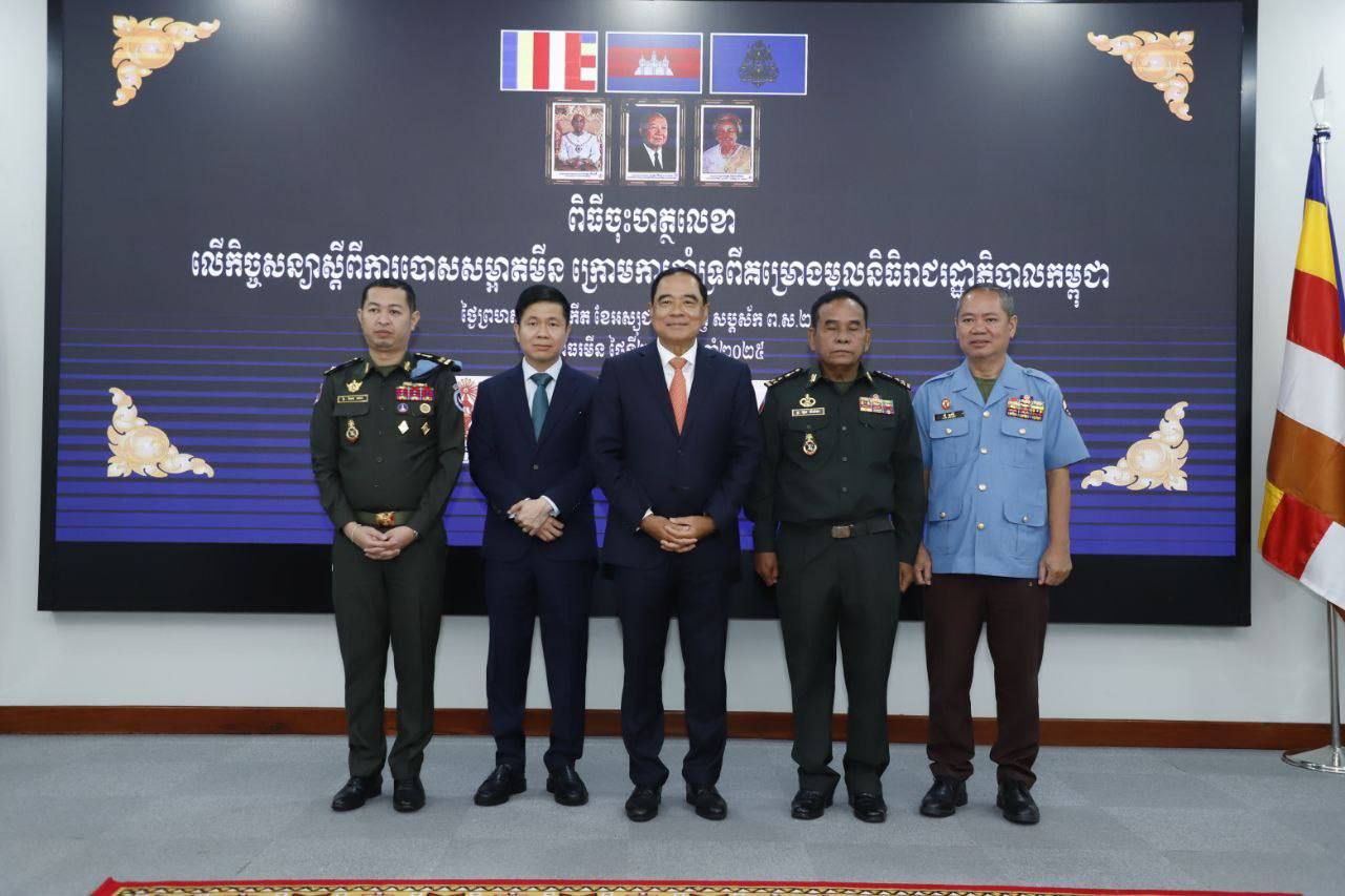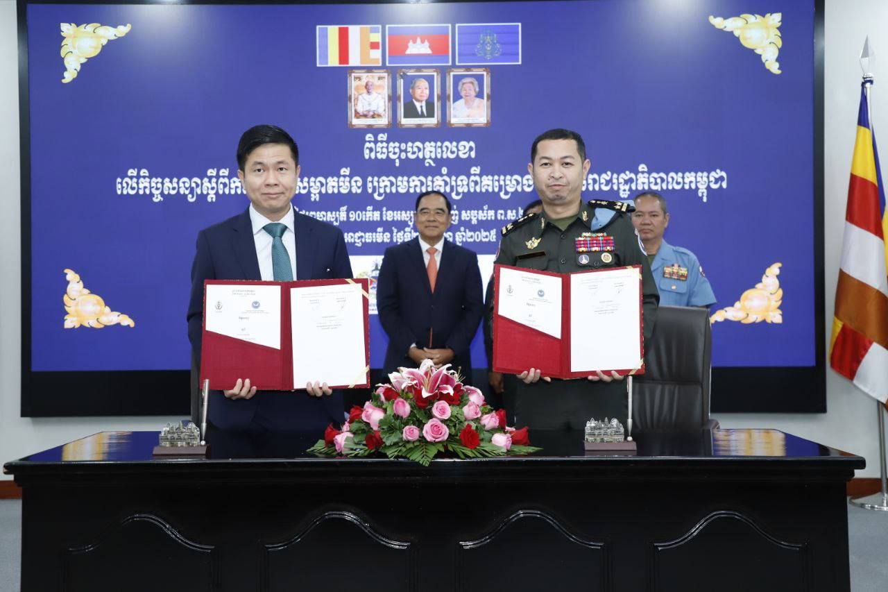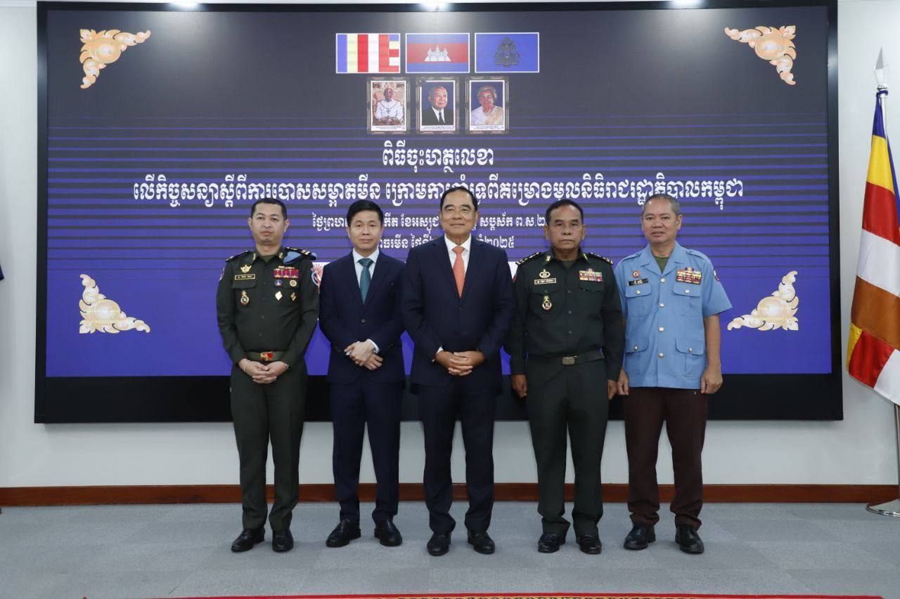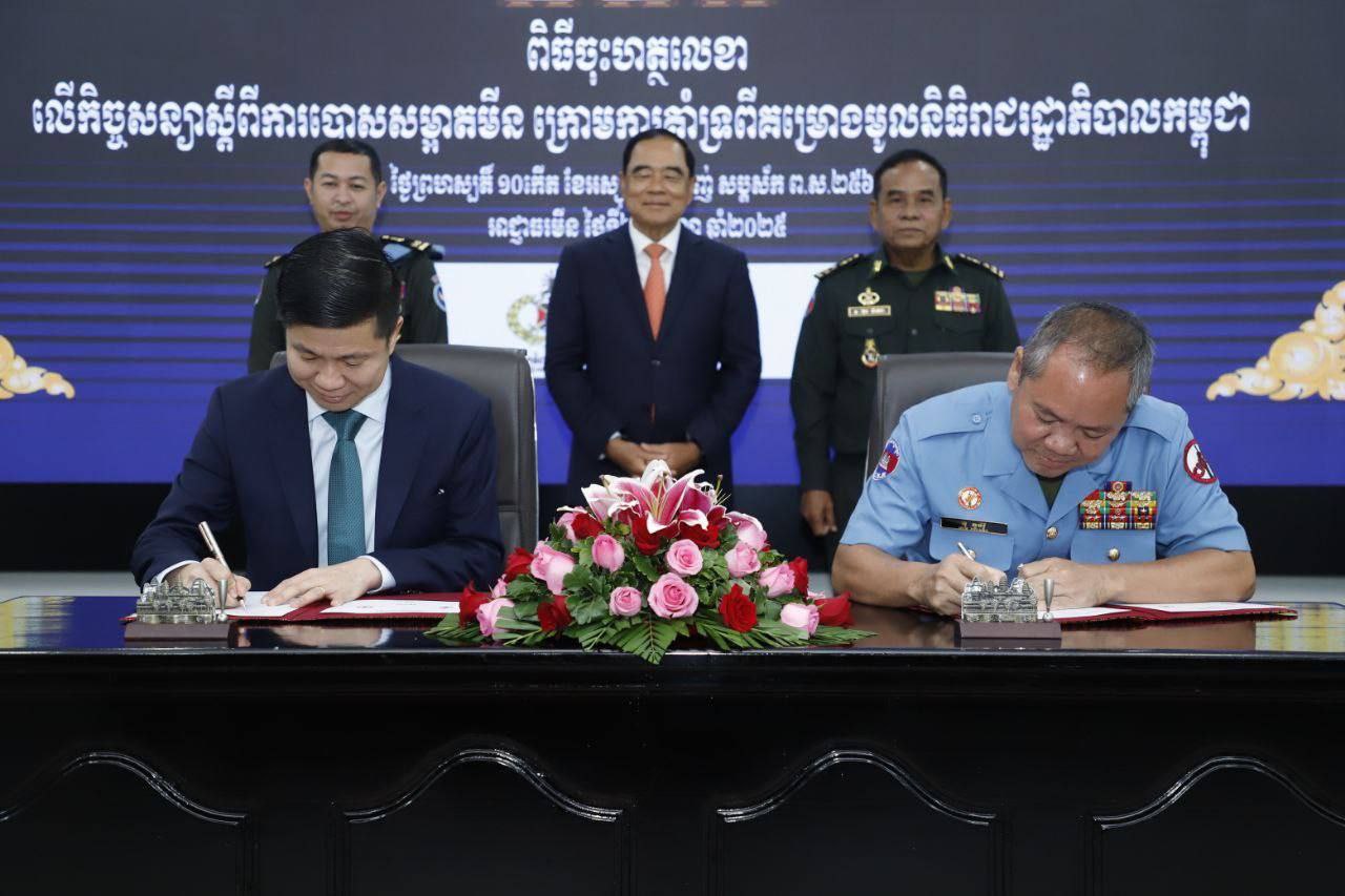 រាជធានីភ្នំពេញ ៖ នៅទីស្នាក់ការអាជ្ញាធរមីន នៅថ្ងៃទី០២ ខែតុលា ឆ្នាំ២០២៥ តាងនាមឱ្យសម្តេចមហាបវរធិបតី ហ៊ុន ម៉ាណែត នាយករដ្ឋមន្ត្រី និងជាប្រធានអាជ្ញាធរមីន ឯកឧត្តមទេសរដ្ឋមន្ត្រី លី ធុជ អនុប្រធានទី១ អាជ្ញាធរមីន បានអញ្ជើញជាអធិបតីក្នុងពិធីចុះហត្ថលេខាលើកិច្ចសន្យា បោសសម្អាតមីន គាំទ្រពី «មូលនិធិកម្ពុជាគ្មានមីនឆ្នាំ២០២៥» ដែលការចុះហត្ថលេខានេះ ប្រព្រឹត្តិទៅរវាងអាជ្ញាធរមីន ជាមួយបញ្ជាការដ្ឋានកងទ័ពជើងគោក មជ្ឈមណ្ឌលជាតិគ្រប់គ្រងកងកម្លាំងរក្សាសន្តិភាពបោសសម្អាតមីន និងកាកសំណល់សង្គ្រាម និងមជ្ឈមណ្ឌលសកម្មភាពកំចាត់មីនកម្ពុជា ។