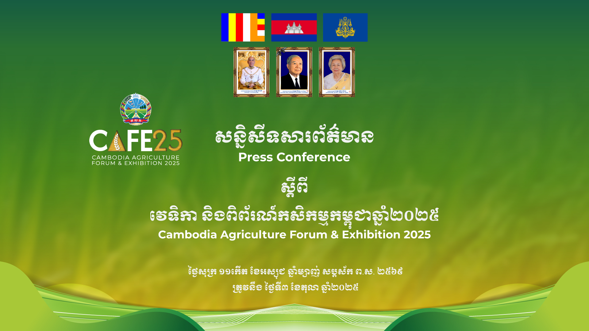 រាជធានីភ្នំពេញ ៖ នាខែវិច្ចិកាខាងមុខនេះ ក្រសួងកសិកម្ម រុក្ខាប្រមាញ់ និងនេសាទ នឹង រៀបចំវេទិកា និងពិព័រណ៍កសិកម្មកម្ពុជាឆ្នាំ២០២៥ ហៅកាត់ថា (CAFE25) ដែលជាព្រឹត្តិការណ៍កសិកម្មដ៏ធំបំផុតដំបូងបង្អស់នៅព្រះរាជាណាចក្រកម្ពុជា ។ គោលបំណងរបស់ព្រឹត្តិការណ៍នេះ គឺដើម្បីផ្ដល់ឱកាសដ៏សំខាន់ជាច្រើនដល់កសិករកម្ពុជា ជាពិសេស គឺការផ្សារភ្ជាប់ទីផ្សារ និងការបង្កើនចំណេះដឹង ។