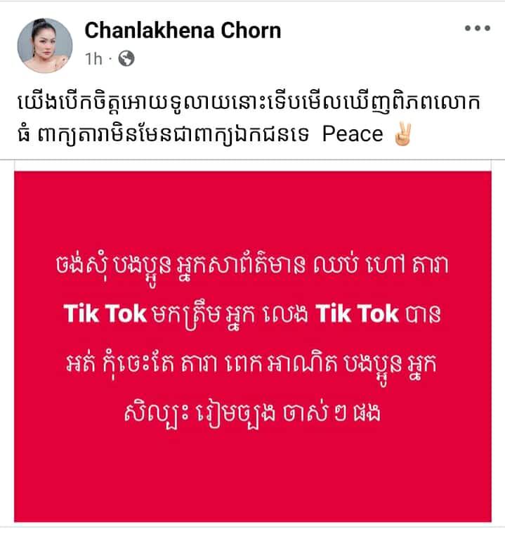 ការលើកឡើងពីអ្នកនាង ចន ច័ន្ទល្ខិណា នាពេលនេះបានធ្វើឡើង បន្ទាប់ពីមានមានមតិមួយរបស់តារាសម្តែង ឌីជេ កាកា បានស្នើសុំដល់បណ្តាអ្នកសារព័ត៌មានក្នុងស្រុកមួយចំនួនឲ្យឈប់ហៅ តារា Tik Tok ដោយមកត្រឹមអ្នកលេង Tik Tok កុំចេះតែតារាពេក អាណិតបងប្អូនអ្នកសិល្បៈរៀមច្បងចាស់ៗផង ។