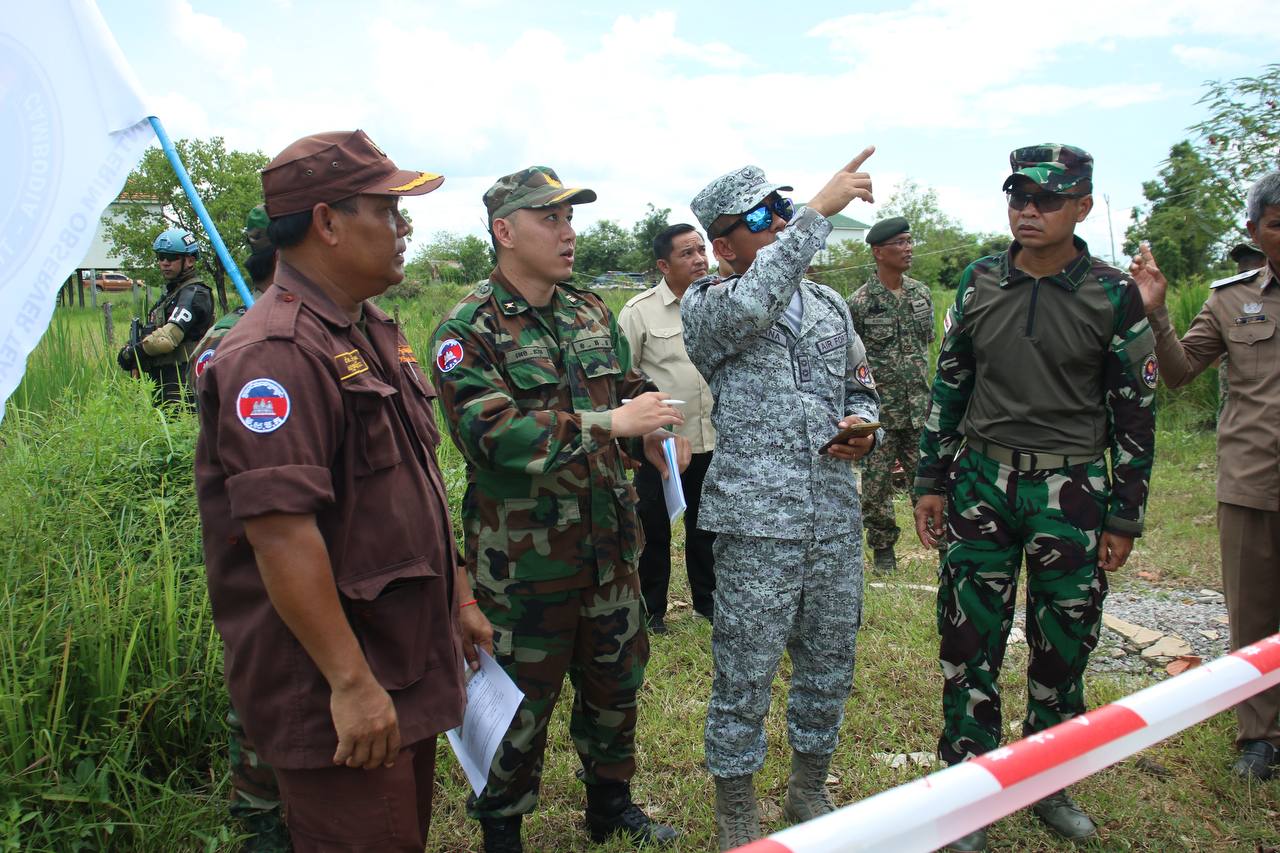 ខេត្តឧត្តរមានជ័យ ៖ លោកជំទាវ ឧត្តមសេនីយ៍ឯក ម៉ាលី សុជាតា អ្នកនាំពាក្យក្រសួងការពារជាតិ នៃព្រះរាជាណាចក្រកម្ពុជា ៖ នៅព្រឹកថ្ងៃសៅរ៍ ទី០៤ ខែតុលា ឆ្នាំ២០២៥ ក្រសួងការពារជាតិ នៃព្រះរាជាណាចក្រកម្ពុជា បានសម្របសម្រួលជូនក្រុមអ្នកសង្កេតការណ៍អន្តរកាល (IOT) ដឹកនាំដោយប្រទេសម៉ាឡេស៊ី រួមនិងសមាជិក បានអញ្ជើញចុះពិនិត្យទីតាំងជាក់ស្តែង ដែលរងផលប៉ះពាល់តាមរយៈការប្រើប្រាស់យន្តហោះចម្បាំងរបស់ថៃ ទម្លាក់គ្រាប់ MK84 នៅតំបន់ភូមិថ្មដូន ឃុំគោកមន ស្រុកបន្ទាយអំពិល ខេត្តឧត្តរមានជ័យ ដើម្បីធ្វើការសង្កេត ផ្ទៀងផ្ទាត់ និងរាយការណ៍ ក្រោយបទឈប់បាញ់ បានចូលជាធរមាន ៕