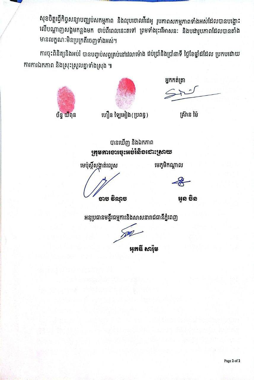 បន្ទាប់ពីក្រុមការងារបានធ្វើការអប់រំណែនាំ លោក ច័ន្ទ យីពុន បានធ្វើកិច្ចសន្យាបញ្ឈប់សកម្មភាព លុបរាល់រូបថត វីដេអូដែលបានបង្ហោះលើបណ្ដាញសង្គមនានាចេញទាំងចាស់ទាំងថ្មី និងរុះរើអាសនៈព្រះពុទ្ធរូប រូបថត និងបដាតាំងនៅក្នុងផ្ទះដែលមិនប្រក្រតីចេញទាំងអស់៕