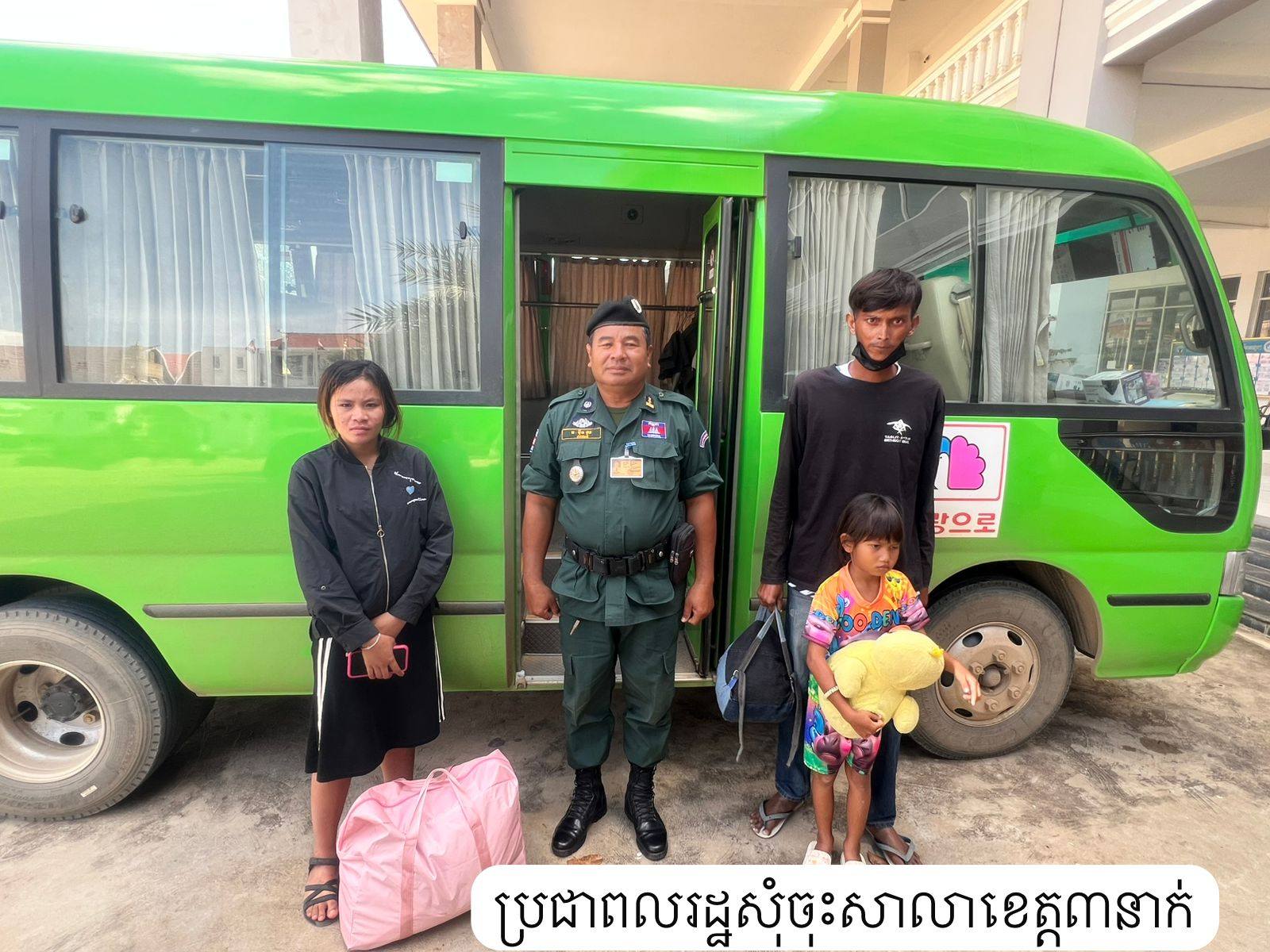 បន្ទាយមានជ័យ ៖ ពលរដ្ឋខ្មែរដែលវិលត្រឡប់មកពីប្រទេសថៃ មានចំនួន២១នាក់ នៅថ្ងៃទី០៤ ខែតុលា ឆ្នាំ២០២៥ ហើយនគរបាលបានប្រើប្រាស់រថយន្ត០២គ្រឿង ដឹកជញ្ចូនពួកគាត់ទៅកាន់លំនៅដ្ឋាន ។ នេះបើយោងតាមផេក ស្នងការដ្ឋាននគរបាលខេត្តបន្ទាយមានជ័យ បានប្រកាសនាថ្ងៃទី០៤ ខែតុលានេះ ។