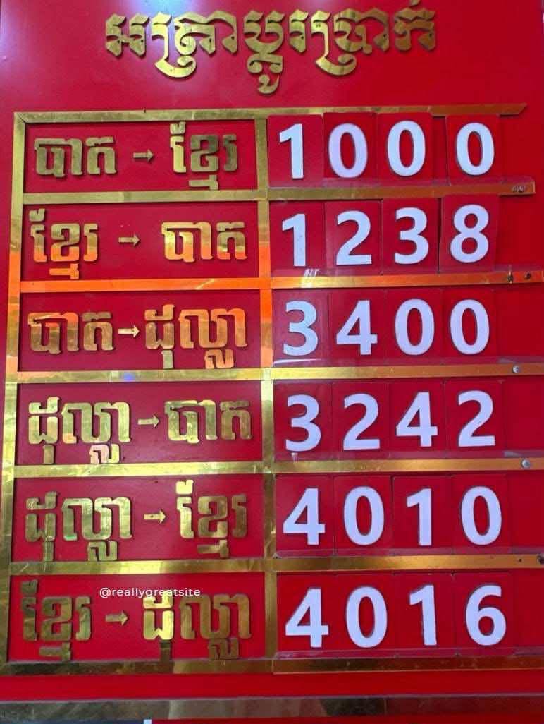 ខេត្តបន្ទាយមានជ័យ ៖ ប្រជាពលរដ្ឋរស់នៅជាប់ជាយដែននាំគ្នាសម្រុកយកលុយបាតទៅដូរយកប្រាក់រៀលនិងដុល្លាតាំងពីថ្ងៃរហូតដល់យប់ថ្ងៃទី០៦ ខែតុលា ឆ្នាំ២០២៥នៅក្រុងប៉ោយប៉ែត។ ក្រោយពីសម្តេចតេជោ ហ៊ុន សែន បានបង្ហោះសារតាមបណ្តាញសង្គមជម្រាបដល់បងប្អូនប្រជាពលរដ្ឋរស់នៅជិតព្រំដែនកម្ពុជា.ថៃសូមប្រញាប់ប្តូរប្រាក់ថៃ ទៅជាប្រាក់រៀលឬដុល្លារ…