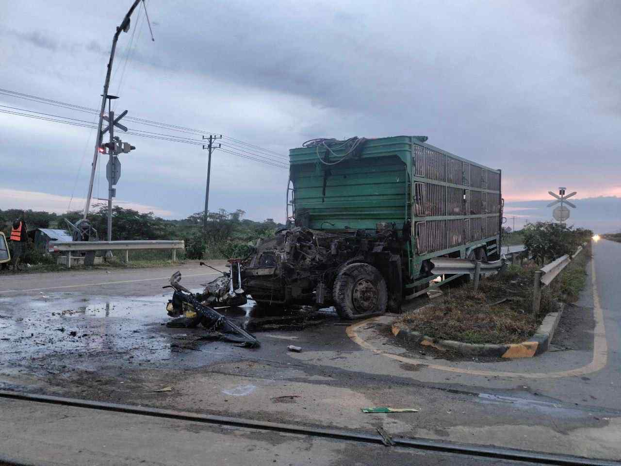 សមត្ថកិច្ចបានឲ្យដឹងថា រថយន្តធុនធំនោះដឹកជ្រូកពេញ ហើយបានបើកទៅបុកទូរថភ្លើងទាំងកំរោល នៅពេលដែលរថភ្លើងកំពុងធ្វើដំណើរឆ្លងកាត់ផ្លូវហាយវេ ខណៈដែលបារ៉ាស់រាំងផ្លូវរថភ្លើងត្រូវបានឆ្មាំទាញបិទទៅហើយ ។ រថយន្តនោះម៉ាកយីហាន់ដាយ ពាក់ស្លាកលេខភ្នំពេញ 3F 3307 បើកបរដោយឈ្មោះសីហា ខេត្ត អាយុ២៧ឆ្នាំ ។
