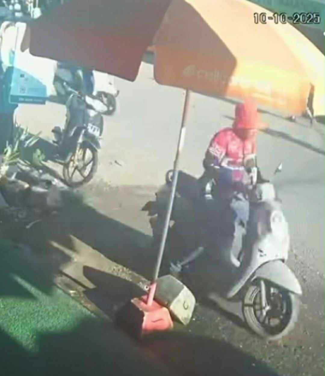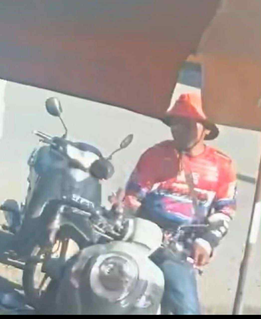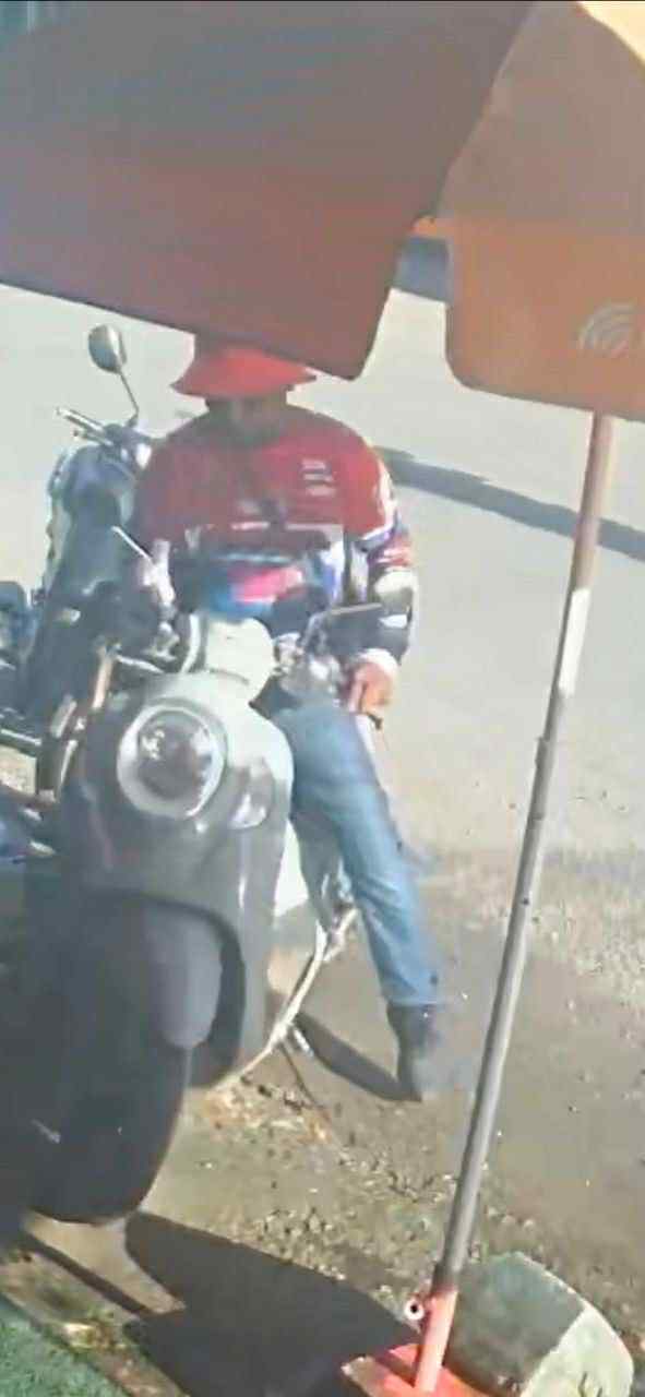 បុរសនេះពាក់អាវកីឡាពណ៌ក្រហមលាយខ្មៅ និងពាក់មួកក្រណាត់ពណ៌ក្រហមដែរ ។ ជននេះ ជិះម៉ូតូម្នាក់ឯងទៅឈប់ខាងមុខហាងលក់ទូរស័ព្ទ ទុកម៉ូតូខ្លួនឯងចោល រួចចុះដើរទៅឡើងជិះម៉ូតូម៉ាក Scoopy ចេញទៅបាត់ភ្លាមៗធ្វើព្រងើយ ដោយសុវត្ថិភាព តែបានបន្សល់ទុកម៉ូតូកញ្ចាស់របស់ខ្លួននៅកន្លែងកើតហេតុ ។