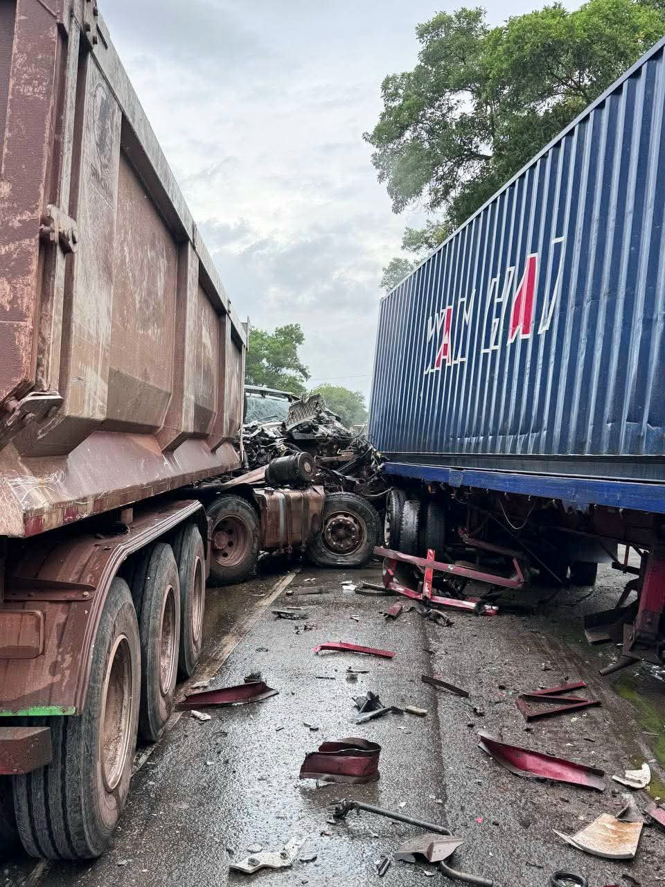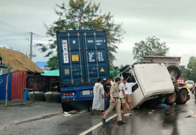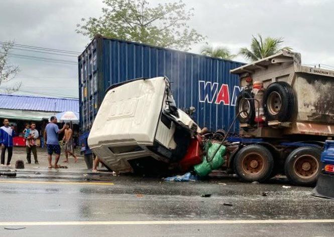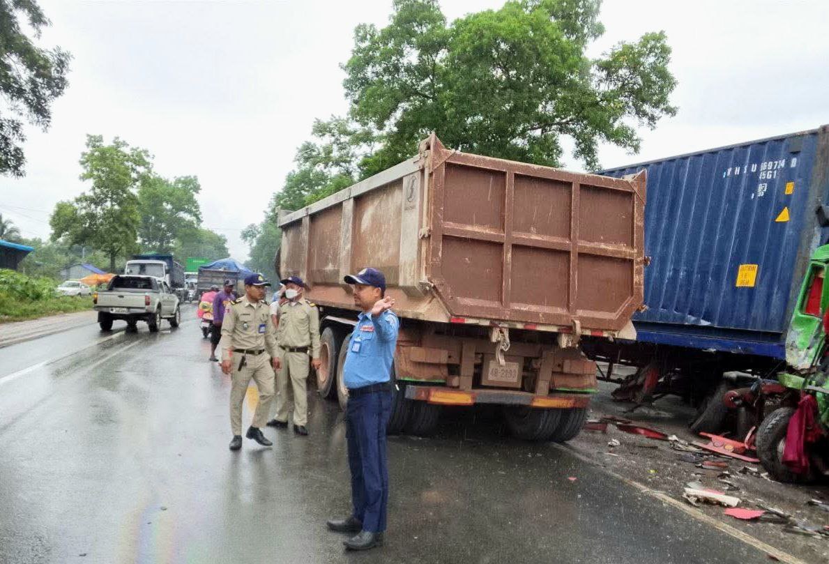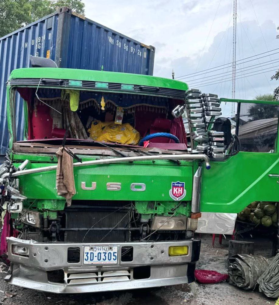ខេត្តកំពង់ស្ពឺ ៖ រថយន្តសណ្តោងទូកុងតឺន័រចំនួន០២គ្រឿងបានបុកគ្នាចំពីមុខយ៉ាងពេញទំហឹង ខណៈដែលមេឃកំពុងធ្លាក់ភ្លៀង ហើយជ្រុលទៅបុកចូលតូបអ្នកលក់ដូរអមផ្លូវជាតិលេខ៤ បង្កឱ្យមានការភ្ញាក់ផ្អើលទាំងព្រឹក តៃកុងរត់គេចខ្លួនបាត់អស់ ។ ហេតុការណ៍រថយន្តកុងតឺន័របុកគ្នាលើផ្លូវជាតិលេខ៤បានកើតឡើង កាលពីព្រឹកថ្ងៃទី១០ ខែតុលា ឆ្នាំ២០២៥ នៅលើកំណាត់ផ្លូវជាតិលេខ៤ ចន្លោះបង្គោលគីឡូម៉ែត្រលេខ៨២ទៅលេខ៨៣ ស្ថិតនៅក្នុងភូមិទី១ ឃុំត្រែងត្រយឹង ស្រុកភ្នំស្រួច ខេត្ដកំពង់ស្ពឺ ។