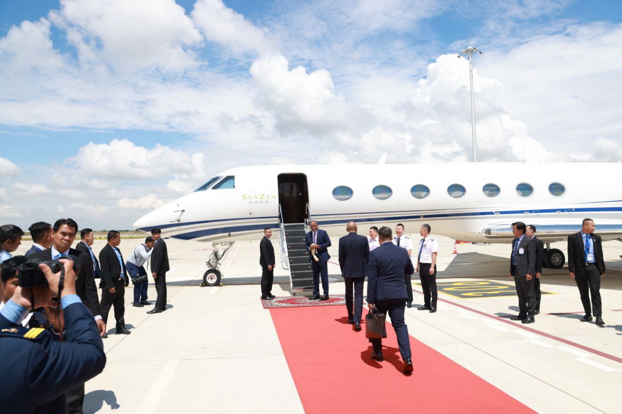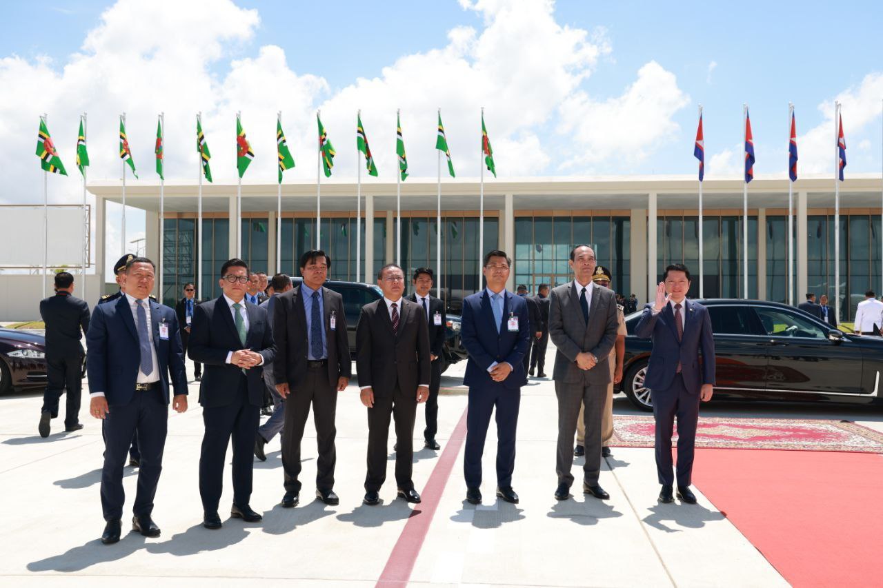 ក្នុងឱកាសអញ្ជើញនិវត្តន៍ពីអាកាសយានដ្ឋានអន្តរជាតិតេជោទៅកាន់មាតុប្រទេសវិញតាមជើងហោះហើរឯកជនរបស់ ឯកឧត្តម Roosevelt Skerrit នាយករដ្ឋមន្ត្រី Commonwealth of Dominica (កុំមិនវែលដូមីនីក) មានការអញ្ជើញជូនដំណើរពីឯកឧត្តម សុខ សូកេន រដ្ឋមន្ត្រីក្រសួងអធិការកិច្ច និងជារដ្ឋមន្ត្រីអម ឯកឧត្តម ជុំ សុន្ទរី រដ្ឋលេខាធិការក្រសួងការបរទេសនិងសហប្រតិបត្តិការអន្តរជាតិ ព្រមទាំងមន្ត្រីអ្នកមុខអ្នកការជាច្រើនរូបទៀត ។