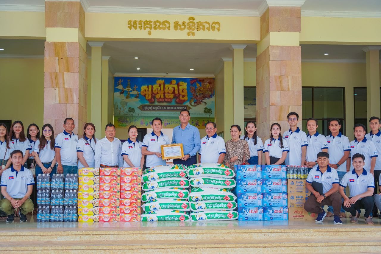 ក្នុងឱកាសជួបសំណេះសំណាលនេះ លោកក៏បាននាំយក នូវអង្គរ៥០០គីឡូក្រោម ត្រីខកំប៉ុង ១កេសធំ ទឹកសុទ្ធ ១០កេស ទឹកស៊ីអ៊ីវ ១០យួរ ទឹកត្រី ១០យួរ មីជាតិ ៣០កេស និងថវិការ ១លានរៀល ។