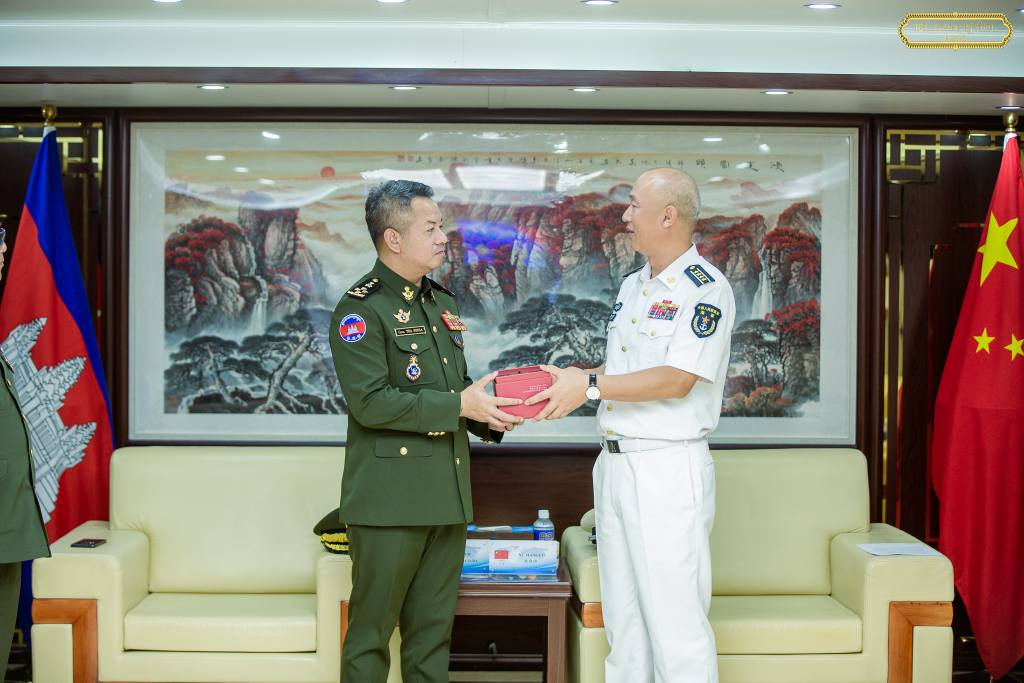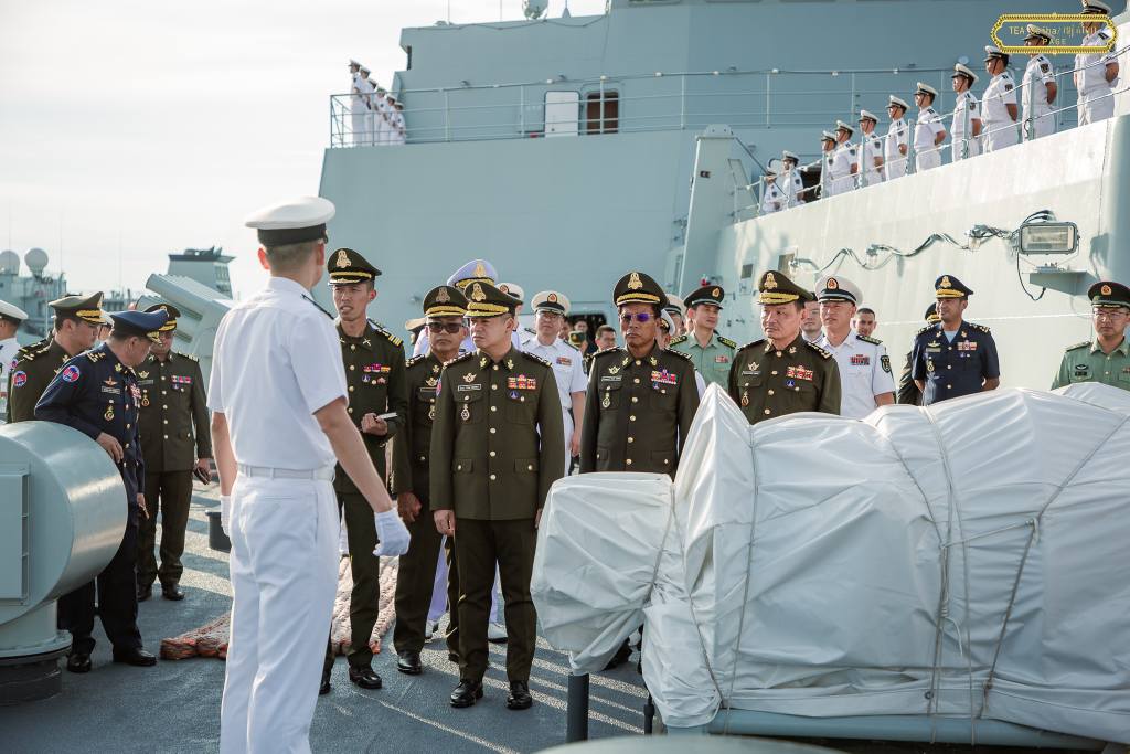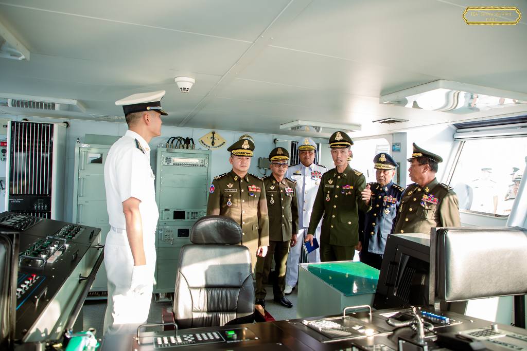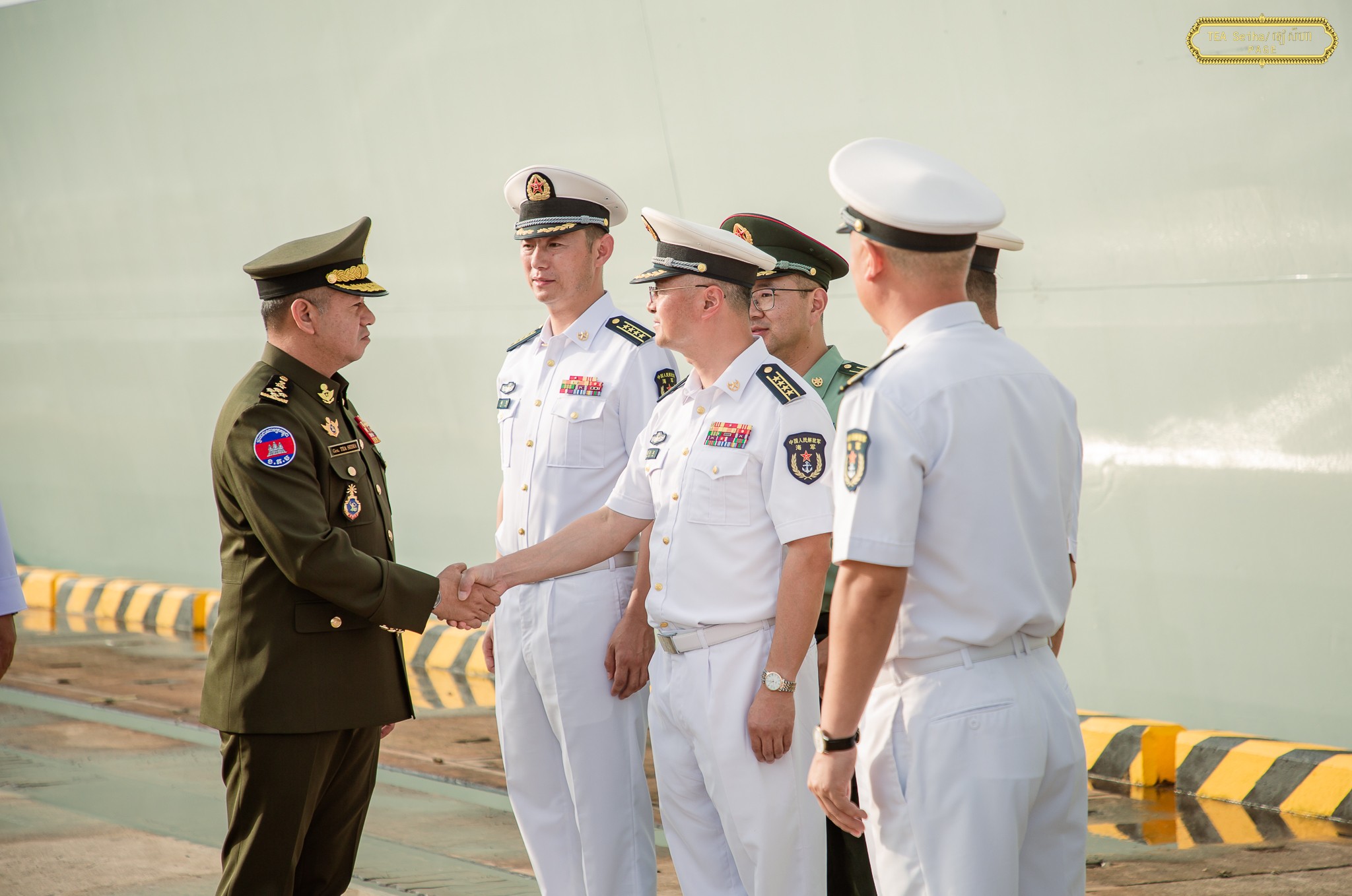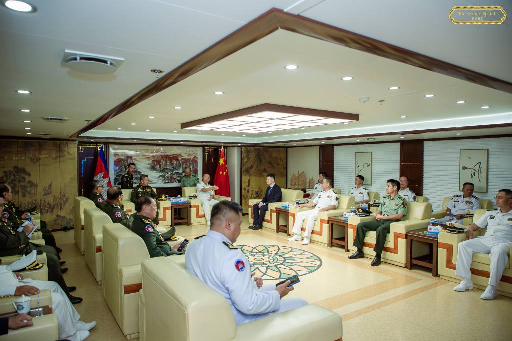 ដំណើរទស្សនកិច្ចដ៏កម្រ ៖ រដ្ឋមន្ត្រីការពារជាតិ ទៀ សីហា ទទួលជួបមេដឹកនាំកងទ័ពជើងទឹកចិន នៅលើនៅកំពង់ផែស្វយ័ត