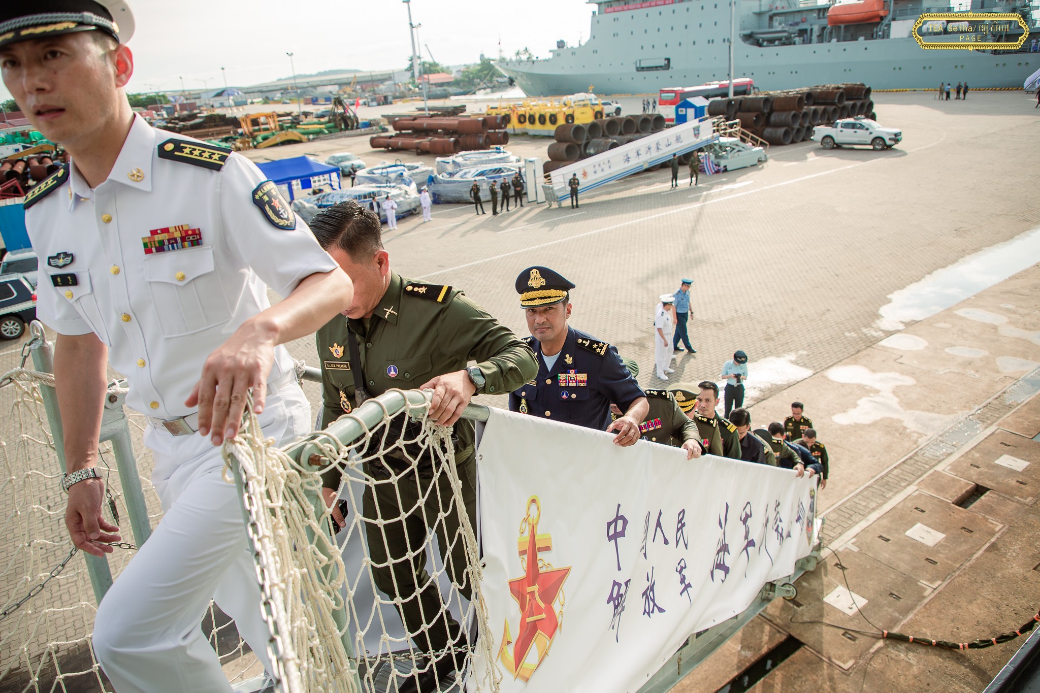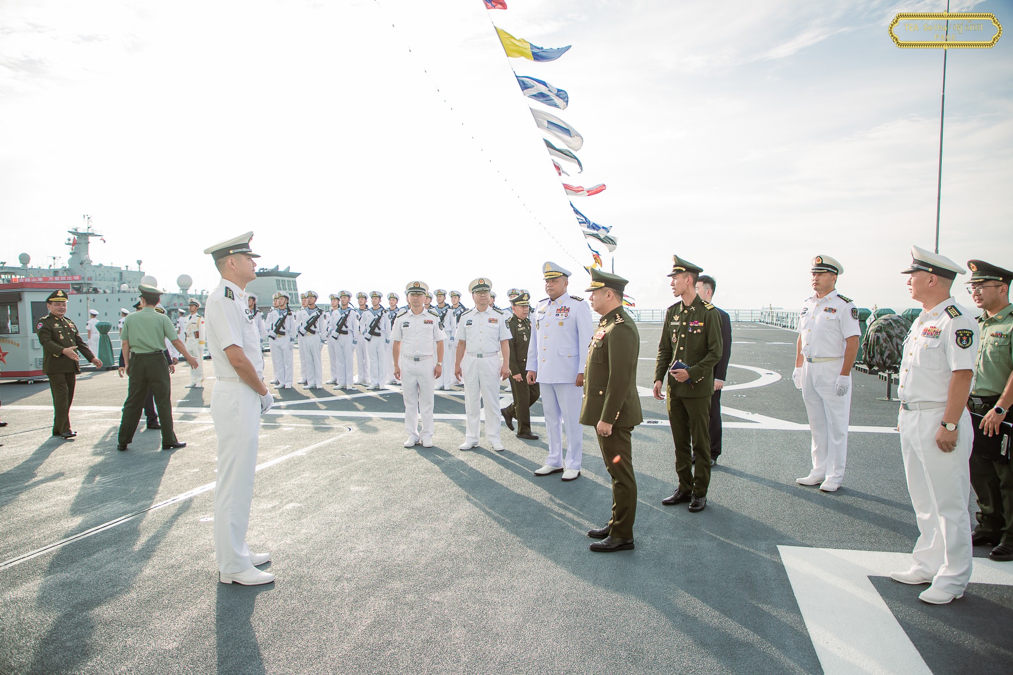 ខេត្តព្រះសីហនុ ៖ កាលពីព្រឹកថ្ងៃទី១១ ខែតុលា ឆ្នាំ២០២៥ នៅខេត្តព្រះសីហនុ ឯកឧត្តម នាយឧត្តមសេនីយ៍ ទៀ សីហា ឧបនាយករដ្ឋមន្ត្រី និងជារដ្ឋមន្ត្រីក្រសួងការពារជាតិ បានអញ្ជើញបំពេញទស្សនកិច្ច នៅលើនាវាចម្បាំងចិនចំនួនពីរគ្រឿង គឺនាវា PLAN 83 និង PLAN 988 ដែលជាកម្មសិទ្ធិរបស់កងទ័ពជើងទឹកនៃកងទ័ពរំដោះប្រជាជនចិន (PLAN) ។