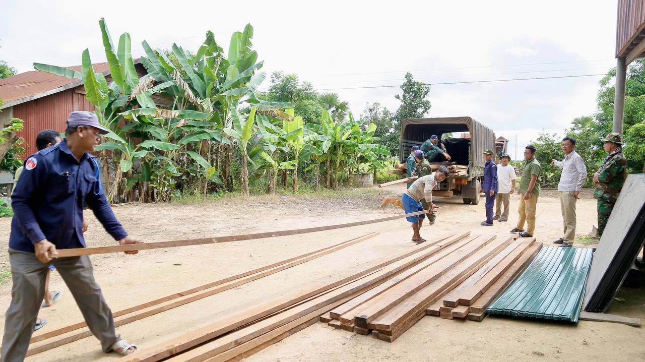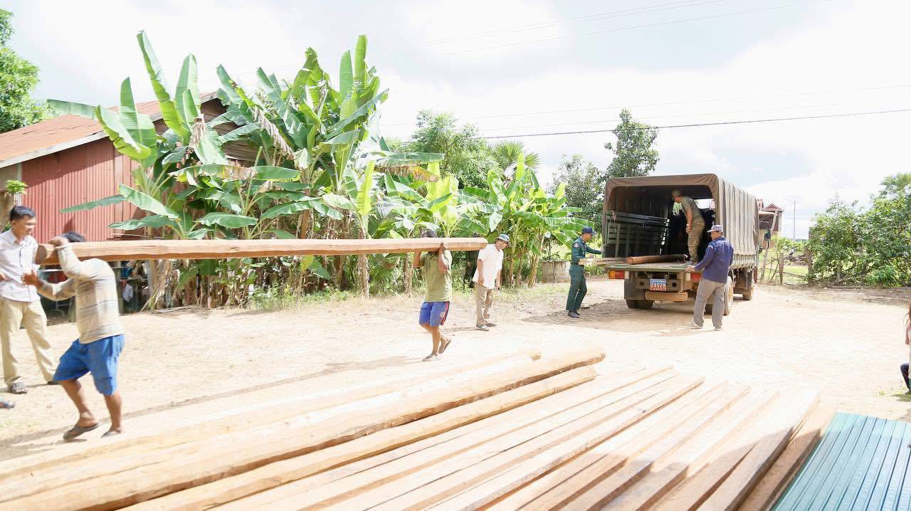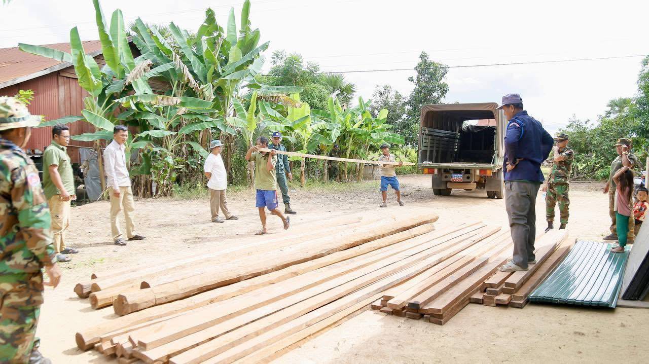 ខេត្តកំពង់ធំ៖ នៅព្រឹកថ្ងៃទី១២ ខែតុលា ឆ្នាំ២០២៥ ឧត្ដមសេនីយ៍ សោម ស៊ុន មេបញ្ជាការតំបន់ប្រតិបត្តិការសឹករងកំពង់ធំ យោធភូមិភាគទី៤ បានចាត់តាំងកម្លាំង ដឹកជញ្ជូនគ្រឿងឈើ និងសម្ភារៈសំណង់ សម្រាប់សាងសង់ជម្រកស្នាក់នៅបណ្តោះអាសន្ន ជូនគ្រួសារវីរៈយុទ្ធជន គ្មានផ្ទះស្នាក់នៅ ភូមិកប់ថ្លុក ឃុំដំរីស្លាប់ ស្រុកកំពង់ស្វាយ ខេត្តកំពង់ធំ ដែលស្វាមីរបស់គាត់កំពុងជាប់ដៃ ក្នុងភារកិច្ចការពារបូរណភាពទឹកដី នៅតំបន់ព្រំដែនកម្ពុជាថៃ ទិសយោធភូមិភាគទី ៤។ នេះបើយោងតាមផេកកងទ័ពជើងគោកនៃកងយោធពលខេមរភូមិន្ទ បានប្រកាសនាថ្ងៃទី១២ ខែតុលា ឆ្នាំ២០២៥នេះ ។