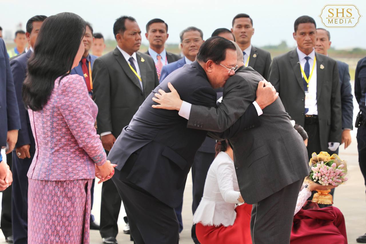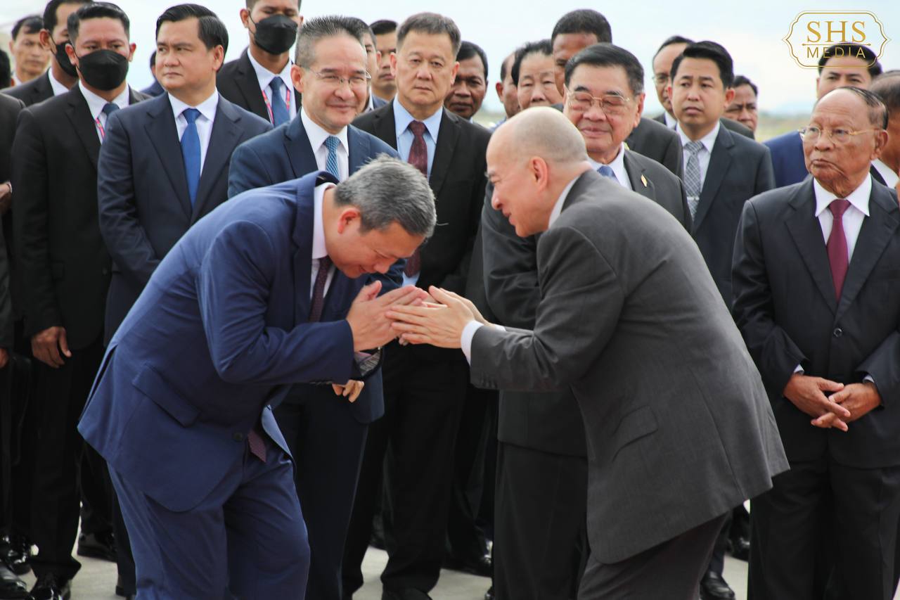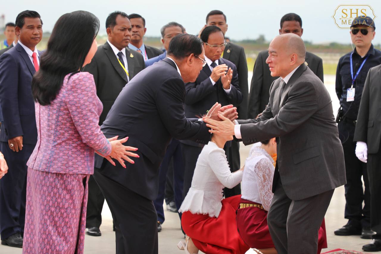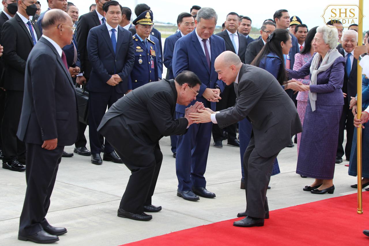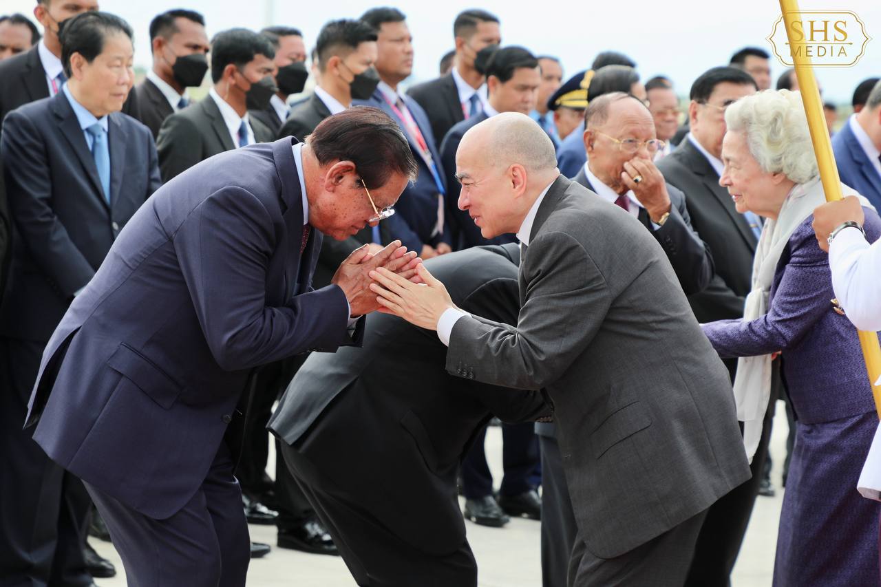 យាង និងអញ្ជើញថ្វាយព្រះរាជដំណើរយាងមកដល់របស់ព្រះអង្គទាំងទ្វេ នៅឯព្រលានយន្តហោះអន្តរជាតិតេជោ មានវត្តមានសម្ដេចអគ្គមហាសេនាបតីតេជោ ហ៊ុន សែន ប្រធានក្រុមឧត្ដមប្រឹក្សាផ្ទាល់ព្រះមហាក្សត្រ និងជាប្រធានព្រឹទ្ធសភានៃព្រះរាជាណាចក្រកម្ពុជា និងសម្ដេចកិត្តិព្រឹទ្ធបណ្ឌិត ប៊ុន រ៉ានី ហ៊ុនសែន សម្ដេចអគ្គមហាពញាចក្រី ហេង សំរិន ប្រធានកិត្តយសនៃឧត្ដមប្រឹក្សាផ្ទាល់ព្រះមហាក្សត្រ សម្តេចមហាបវរធិបតី ហ៊ុន ម៉ាណែត នាយករដ្ឋមន្ត្រីនៃព្រះរាជាណាចក្រកម្ពុជា និងលោកជំទាវបណ្ឌិត ពេជ ចន្ទមុន្នី ហ៊ុនម៉ាណែត ព្រមទាំង សម្ដេចឯកឧត្ដម លោកជំទាវ ជាសមាជិកសមាជិកា ឧត្ដមប្រឹក្សាផ្ទាល់ព្រះមហាក្សត្រ និងមន្ត្រីអ្នកមុខអ្នការជាច្រើនរូបទៀត ។