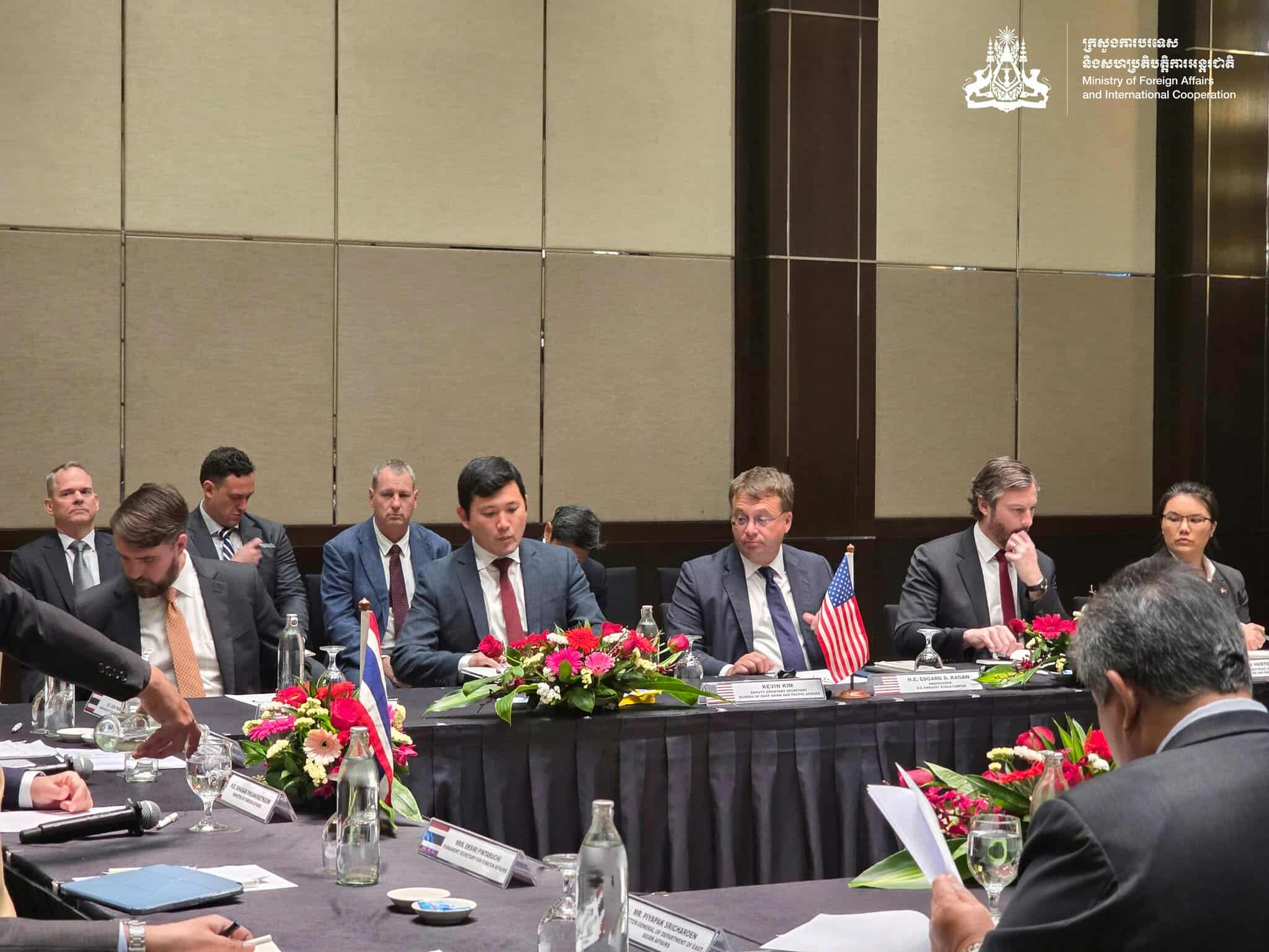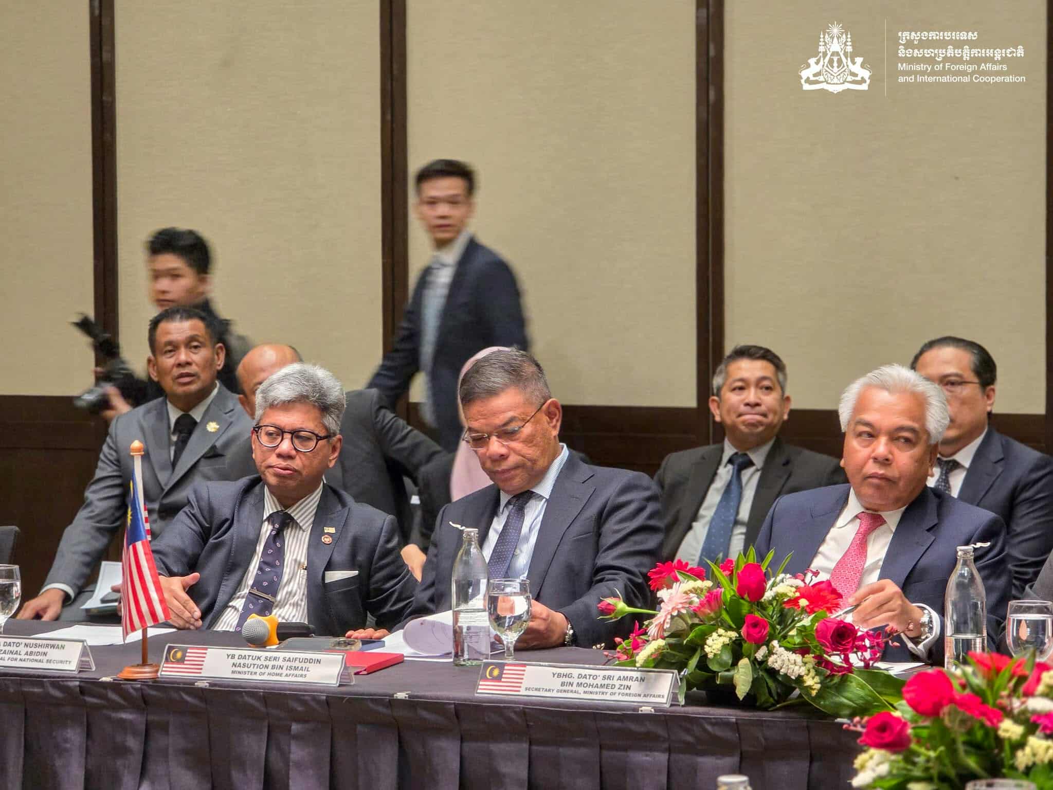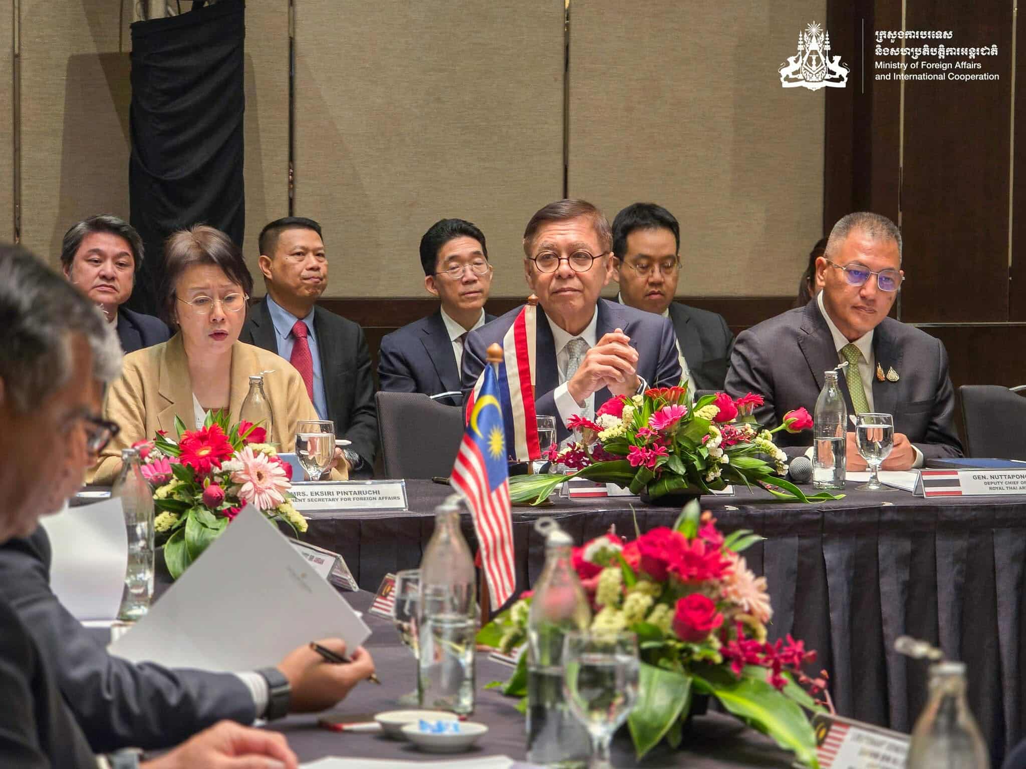 ឯកឧត្តមឧបនាយករដ្ឋមន្ត្រីការបរទេសកម្ពុជា បានកោតសរសើរដ៏ស្មោះស្ម័គ្រចំពោះប្រទេសម៉ាឡេស៊ី និងសហរដ្ឋអាមេរិកលើកិច្ចខិតខំប្រឹងប្រែង ប្រកបដោយន័យស្ថាបនា ក្នុងការសម្របសម្រួលកិច្ចប្រជុំចតុភាគីនេះ ។ ឧបនាយករដ្ឋមន្ត្រីគូសបញ្ជាក់ពីសារៈសំខាន់នៃការធានាការអនុវត្តឱ្យបានពេញលេញ និងមានប្រសិទ្ធភាពលើលក្ខខណ្ឌបទឈប់បាញ់ និងកិច្ចព្រមព្រៀងទាំងអស់ដែលសម្រេចបានក្រោមក្របខ័ណ្ឌនៃគណៈកម្មាធិការព្រំដែនទូទៅ (GBC) គណៈកម្មាធិការព្រំដែនថ្នាក់យោធភូមិភាគ (RBC) និងគណៈកម្មាការចម្រុះព្រំដែន (JBC) ដោយបានសង្កត់ធ្ងន់ថា ភាពសុទ្ធចិត្តត្រូវតែបង្ហាញតាមរយៈសកម្មភាពពិតប្រាកដនៅទីកន្លែង ។
