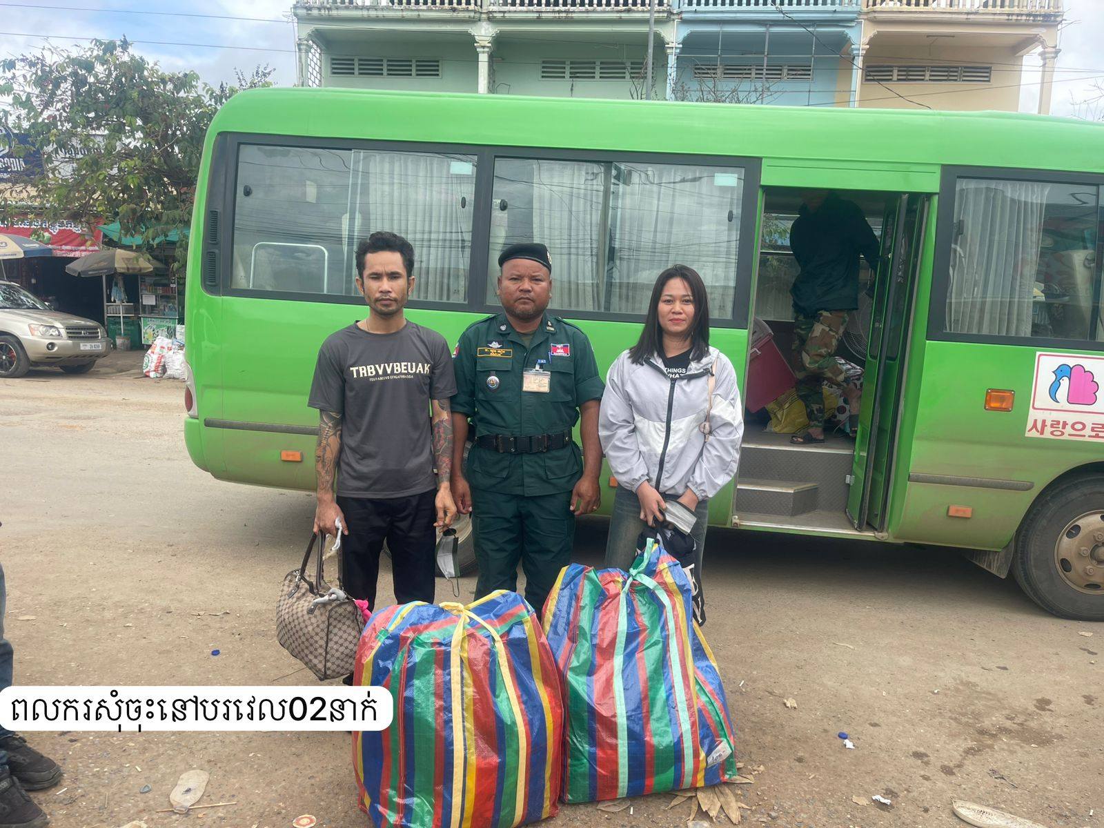 នៅថ្ងៃចន្ទនេះ ចាប់ពីម៉ោង៨.០០ នាទីព្រឹក ដល់ម៉ោង៤.០០នាទីល្ងាច ប្រជាពលរដ្ឋខ្មែរវិលត្រឡប់ មានចំនួន២២នាក់ ស្រី១៣នាក់ ក្នុងនោះកម្លាំងនគរបាលយើងបានប្រើប្រាស់រថយន្ត០២គ្រឿង ដឹកជញ្ជូនពលរដ្ឋទាំងនោះទៅកាន់លំនៅដ្ឋានរបស់ពួកគាត់ នៅខេត្តចំនួន០៤ គឺខេត្តបន្ទាយមានជ័យ ១៣នាក់ ស្រី០៨នាក់,ខេត្តសៀមរាប ០៥នាក់ ស្រី០៤នាក់, ខេត្តបាត់ដំបង០២នាក់ ស្រី០១នាក់, ខេត្តឧត្តរមានជ័យ ០២នាក់ប្រុស ។