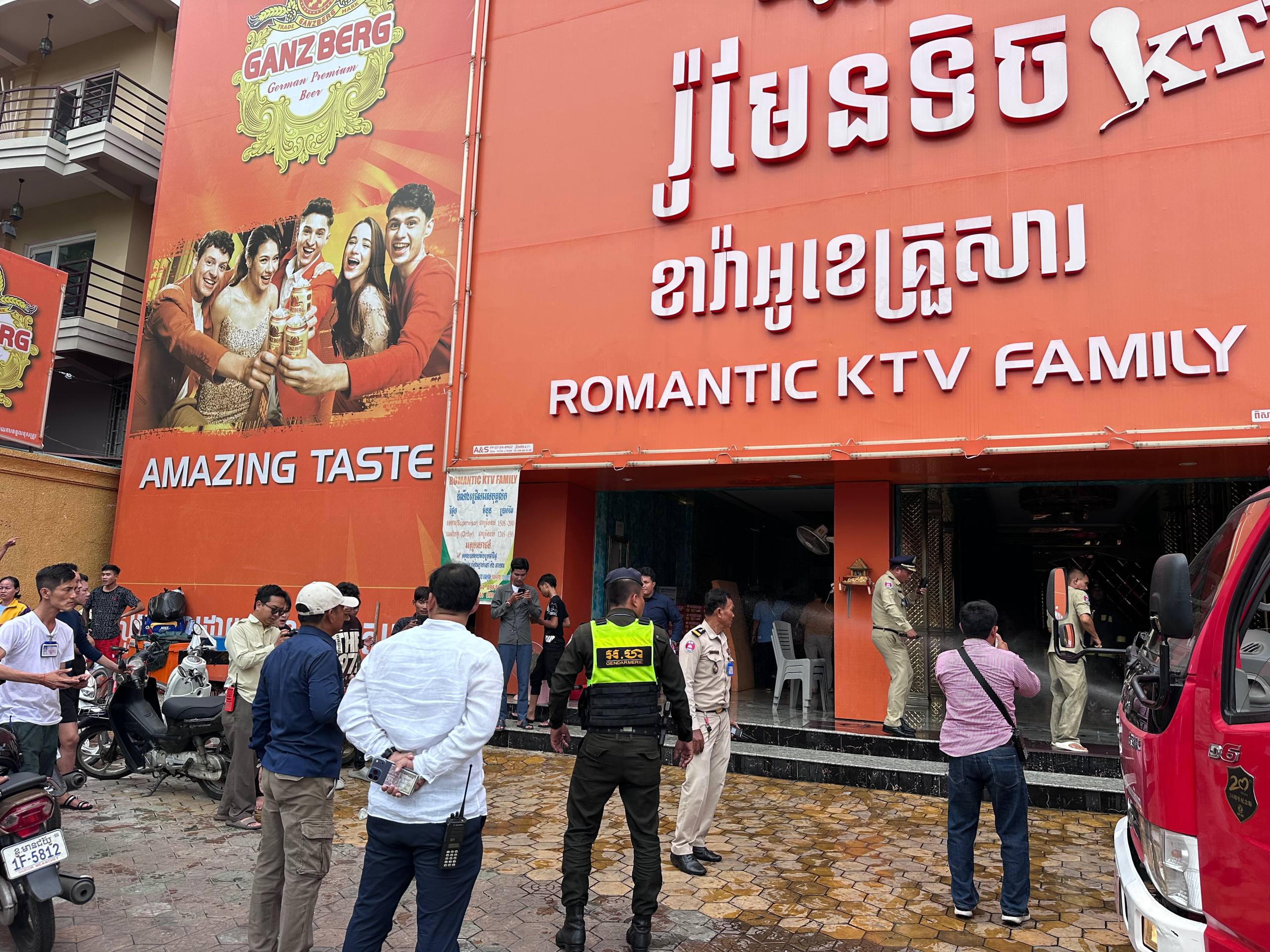 រាជធានីភ្នំពេញ ៖ ទីតាំងខារ៉ាអូខេ រ៉ូមេនទិច លក្ខណៈគ្រួសារមួយកន្លែង សង្ស័យឆ្លងចរន្តអគ្គិសនីចេញពីពិដាន បន្ទប់ជាន់ទី២ បង្កជាអគ្គិភ័យឆាបឆេះផ្សែងហ៊ុយខ្មួលខ្មាញ់ ផ្អើលភ្ញៀវកំពុងច្រៀងរត់ចេញមកក្រៅ ។