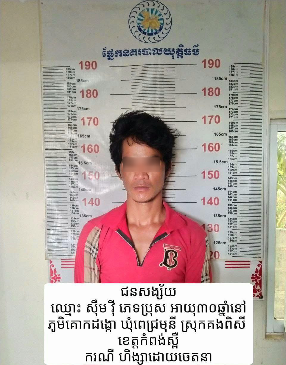 នគរបាលស្រុកគងពិសីបាននិយាយឱ្យដឹងថា បុរសរងគ្រោះមានឈ្មោះ អ៊ុ នី អាយុ៤២ឆ្នាំ មុខរបរធ្វើសំណង់ រស់នៅភូមិគោកដង្កោ ឃុំពេជ្រមុនី ស្រុកគងពិសី ខេត្តកំពង់ស្ពឺ ។ ចំណែកជនសង្ស័យដៃដល់ឈ្មោះ ស៊ឺម វី ហៅខ្មៅ ភេទប្រុស អាយុ៣០ឆ្នាំ រស់នៅភូមិ-ឃុំជាមួយគ្នាខាងលើ។