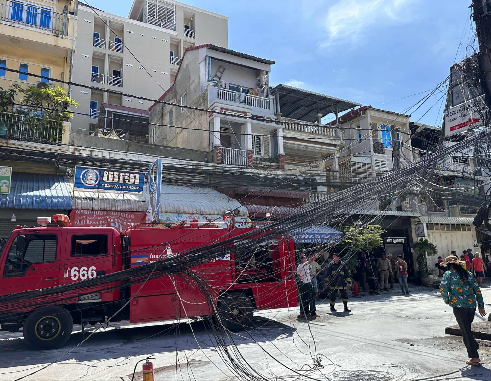 តាមព័ត៌មានឲ្យដឹងថា នៅមុនពេលកើតហេតុ គេឃើញខ្សែភ្លើងបានឆ្លងចរន្តហើយទុស្សេបែកផ្កាភ្លើង និងក្លាយជាអគ្គិភ័យឆាបឆេះខ្សែភ្លើងដែលបំពាក់នៅបង្គោលយ៉ាងសន្ធោសន្ធៅបង្កឲ្យមានការភ្ញាក់ផ្អើលដល់ប្រជាពលរដ្ឋនៅក្បែរខាងមានការភ័យខ្លាចឆេះរាលដាលទៅដល់ផ្ទះសម្បែង ។ ភ្លាមៗប្រជាពលរដ្ឋបាននាំគ្នាយកបំពង់ពន្លត់អគ្គីភ័យជាច្រើនគ្រឿងបាញ់ពន្លត់និងទាក់ទងទៅរថយន្តពន្លត់អគ្គិភ័យដើម្បីជួយអន្តរាគមន៍។