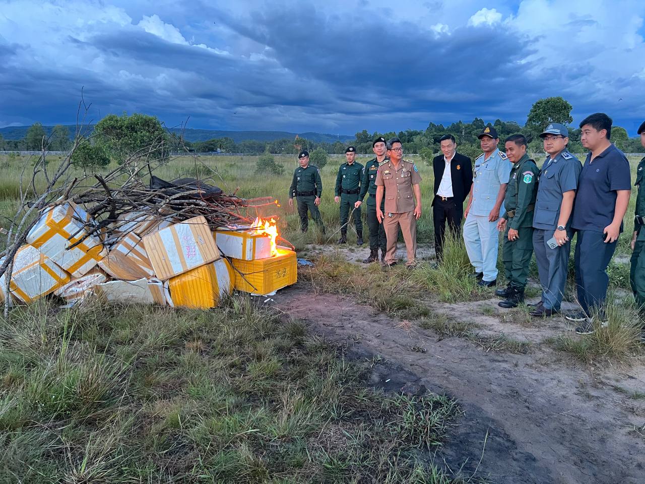 ក្រៅពីសាច់បង្កកដែលត្រូវដុតកម្ទេចចោលខាងលើនេះ ក៏មានក្ដាមរស់ជាច្រើនកេស ត្រូវបានលែងនៅពាមក្រសោម និងមានទំនិញស្ងួតដូចជា កាហ្វេ ថ្នាំលាបផ្ទះ ទឹកអាស៊ីត ត្រូវបានសមត្ថកិច្ចរក្សាទុកនៅស្នងការ ៕