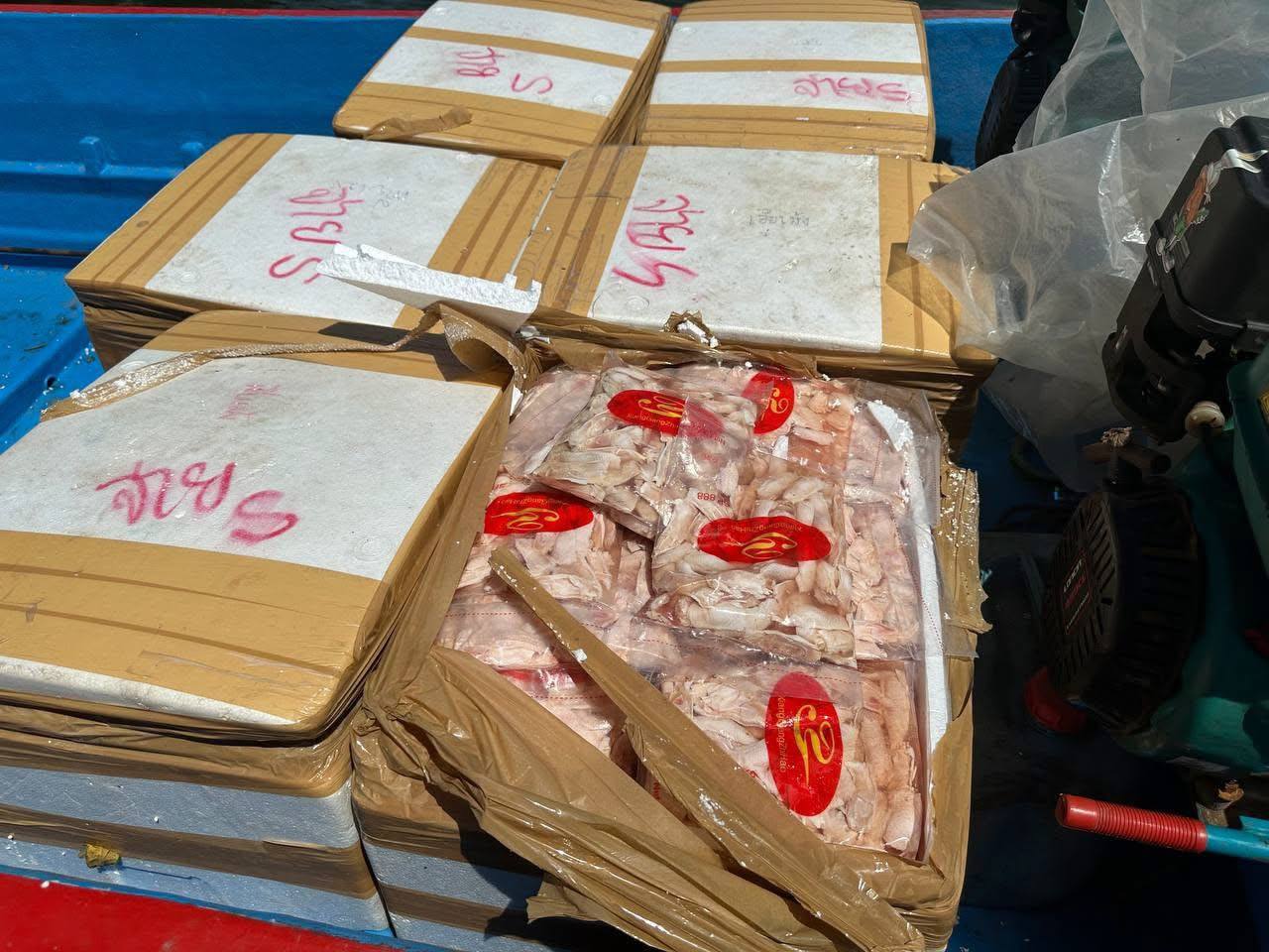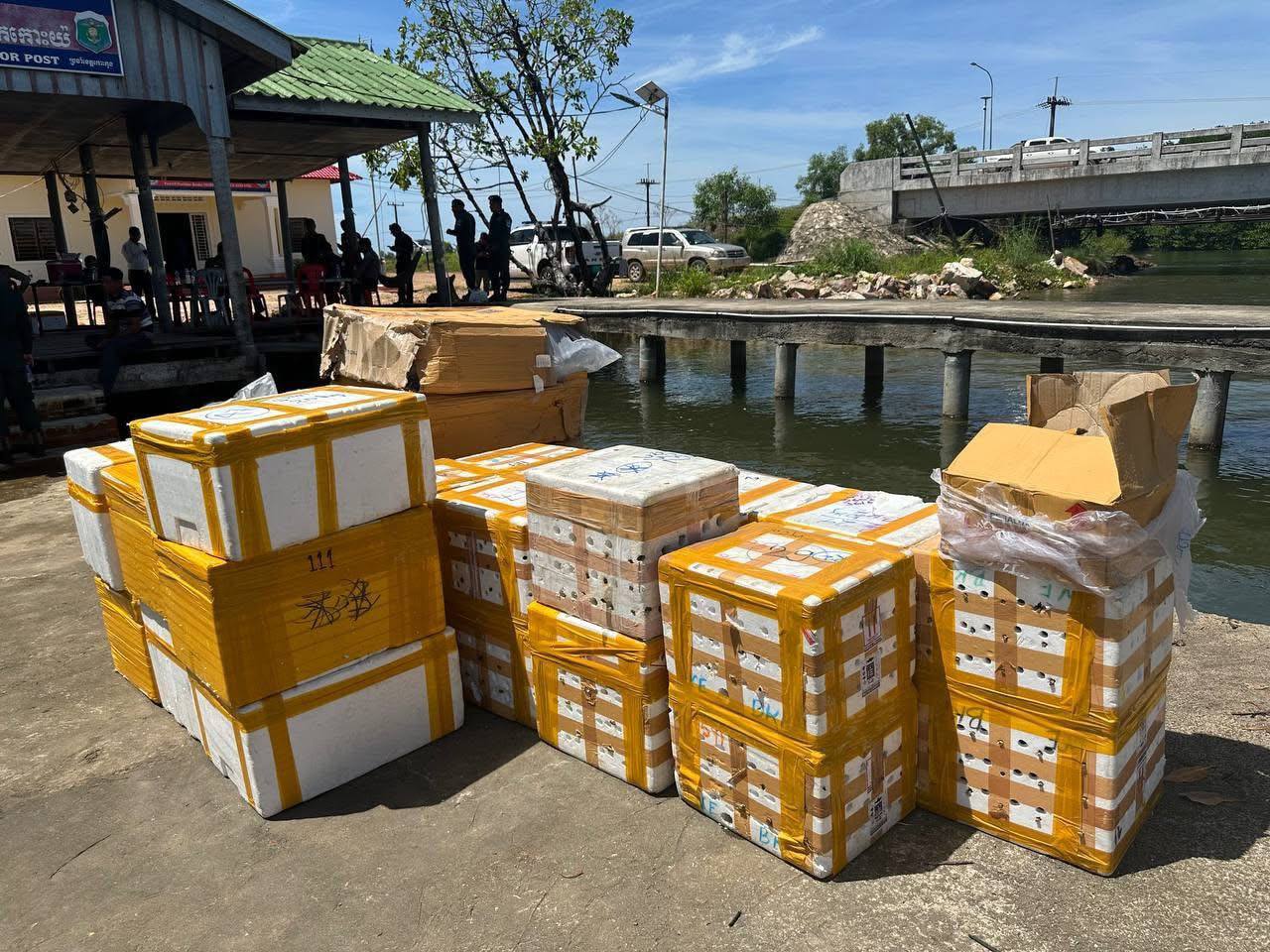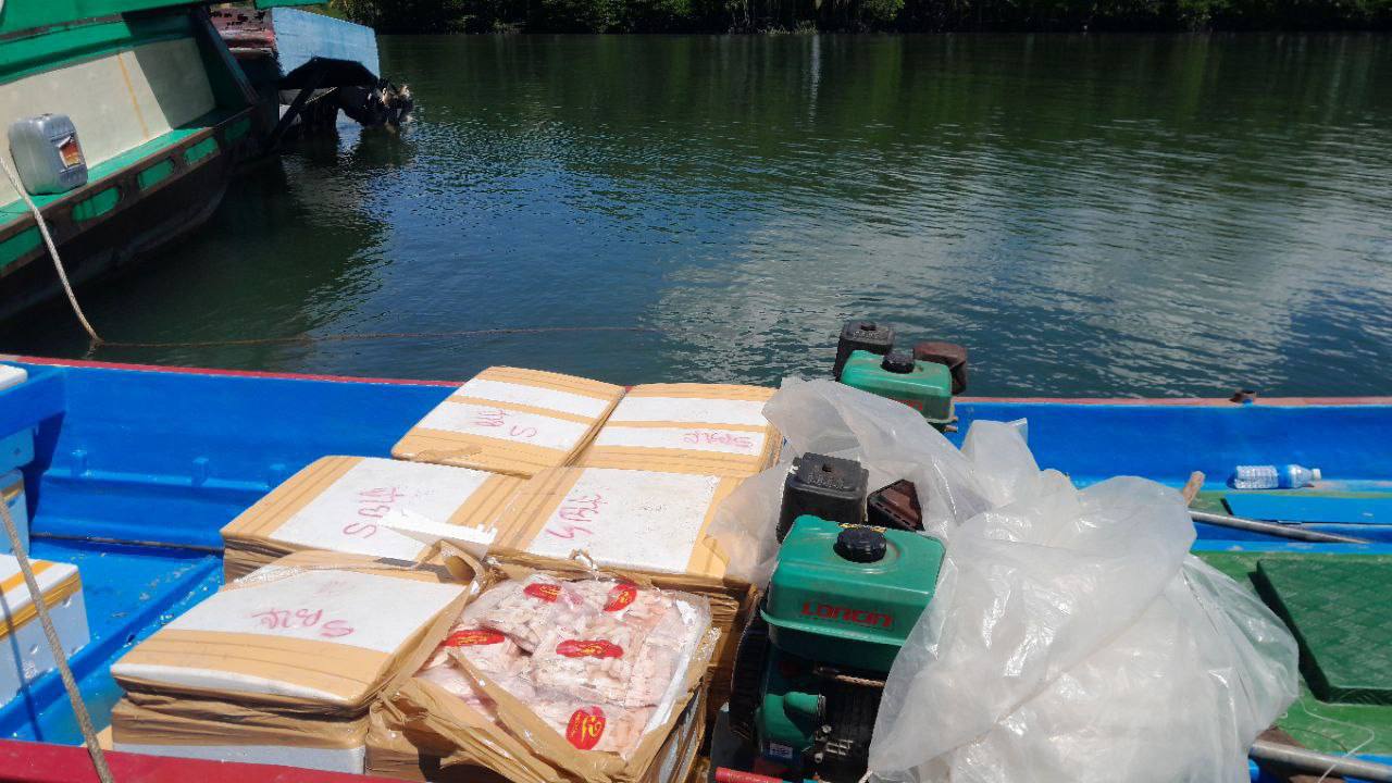 ខេត្តកោះកុង ៖ នៅវេលាម៉ោង០៣ទៀបភ្លឺ នៅថ្ងៃទី១៧ ខែតុលា ឆ្នាំ២០២៥ សមត្ថកិច្ចខេត្តកោះកុងបានឃាត់ទូកដឹកសាច់បង្កកពីថៃ តាមផ្លូវទឹក ចូលខេត្តកោះកុង រឹបអូសបានសាច់បង្កក ទម្ងន់ជិត០១តោន ព្រមទាំងឃាត់ខ្លួនមនុស្ស ០៣នាក់ ។