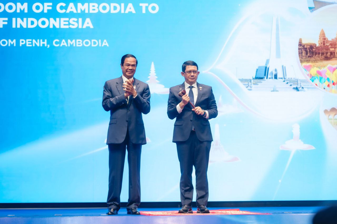 បន្ទាប់ពីបិទបញ្ចប់កិច្ចប្រជុំថ្នាក់រដ្ឋមន្ត្រីអាស៊ាន ស្តីពីការគ្រប់គ្រងគ្រោះមហន្តរាយ លើក១៣ ឯកឧត្តម ទេសរដ្ឋមន្ត្រី គន់ គីម បានអញ្ជើញប្រគល់ញញួរប្តូរវេនទៅប្រធានរៀបចំកិច្ចប្រជុំថ្នាក់រដ្ឋមន្ត្រីអាស៊ាន ស្តីពីការគ្រប់គ្រងគ្រោះមហន្តរាយ លើក១៤ ដល់ ឯកឧត្តម រដ្ឋមន្ត្រីគ្រប់គ្រងគ្រោះមហន្តរាយ ប្រទេសឥណ្ឌូនេស៊ី៕