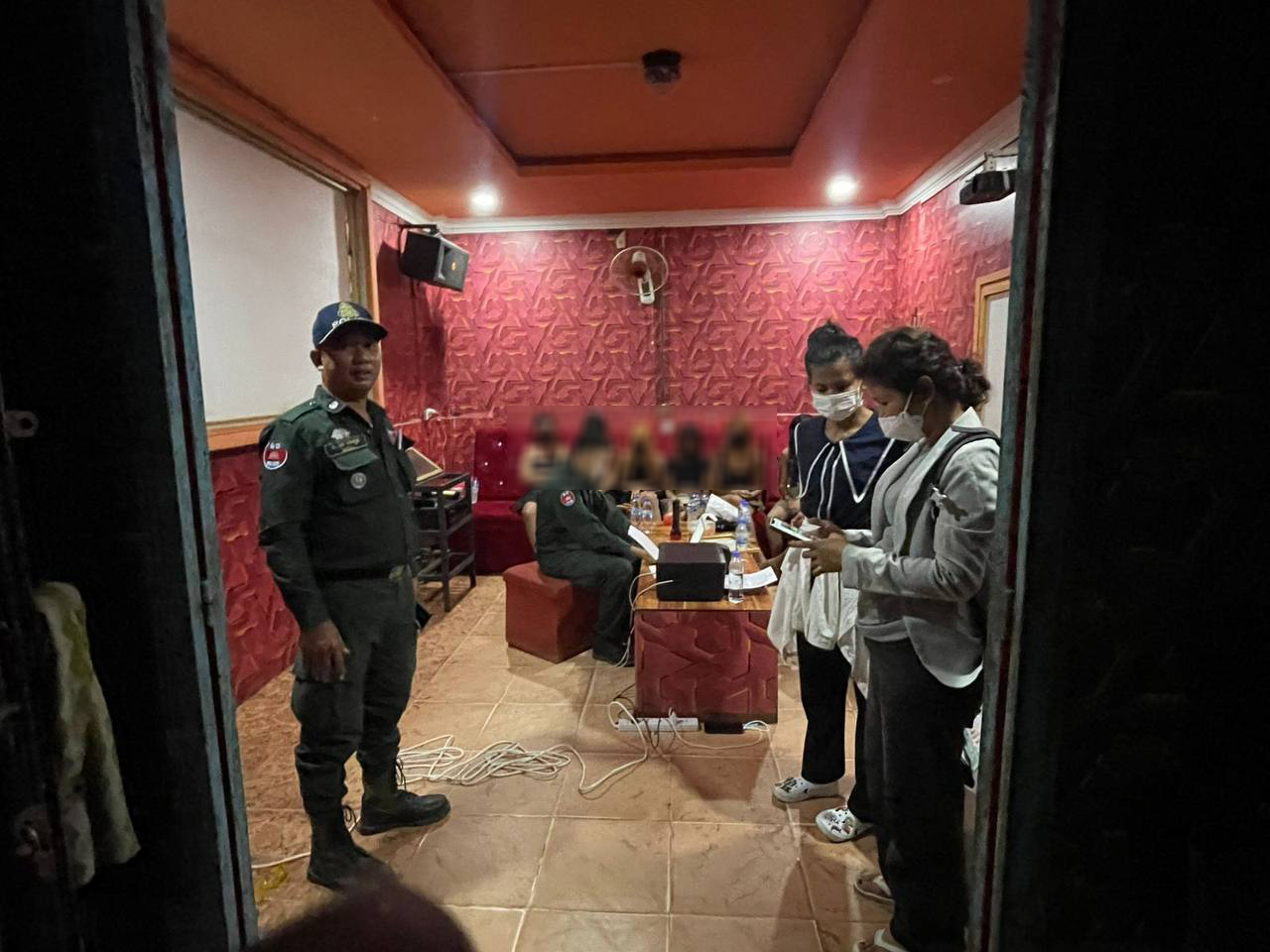 -ទីតាំងទី១ ដឹកនាំដោយលោកឧត្តមសេនិយ៍ទោ ងួន សុខចេង អនុប្រធាននាយកដ្ឋានប្រឆាំងការជួញដូរមនុស្ស និងការពារអនីតិជន នៅហាង KTV ត្រជាក់ចិត្ត II ស្ថិតនៅក្នុងភូមិកំពង់ស្វាយក្រោម ឃុំព្រែកថ្មី ស្រុកកោះធំ ខេត្តកណ្តាល រកឃើញមានស្រោមអនាម័យមួយចំនួនធំ នៅបន្ទប់គ្មានលេខ ដោយបានឃាត់ខ្លួនមនុស្សចំនួន ០៨នាក់។