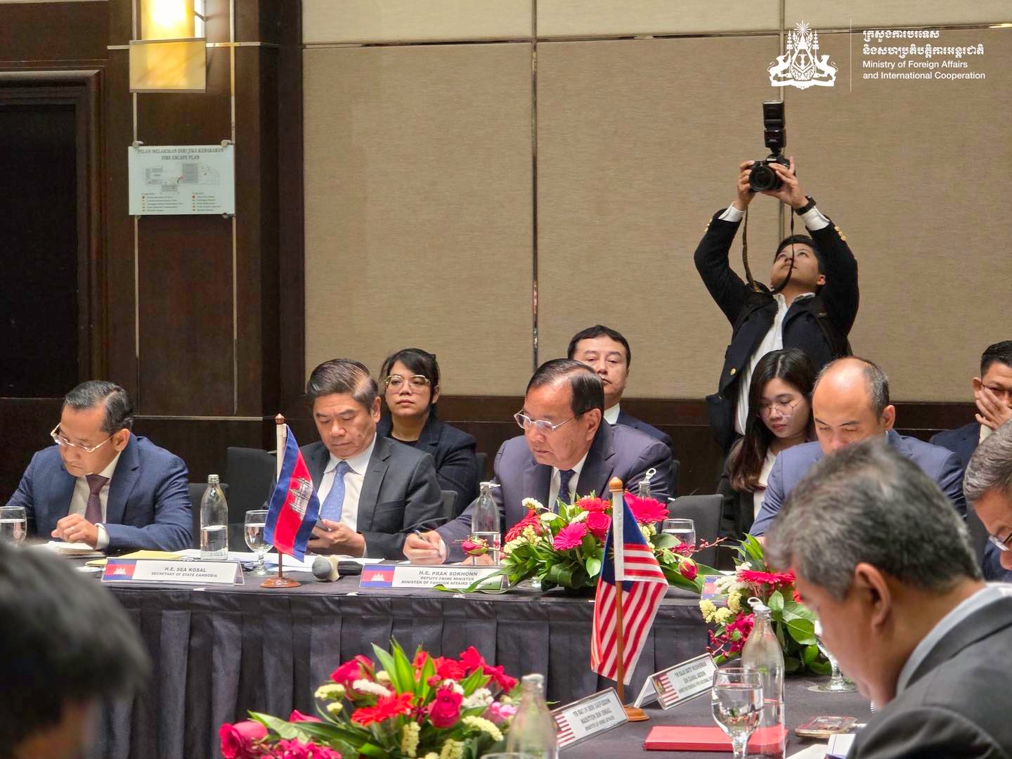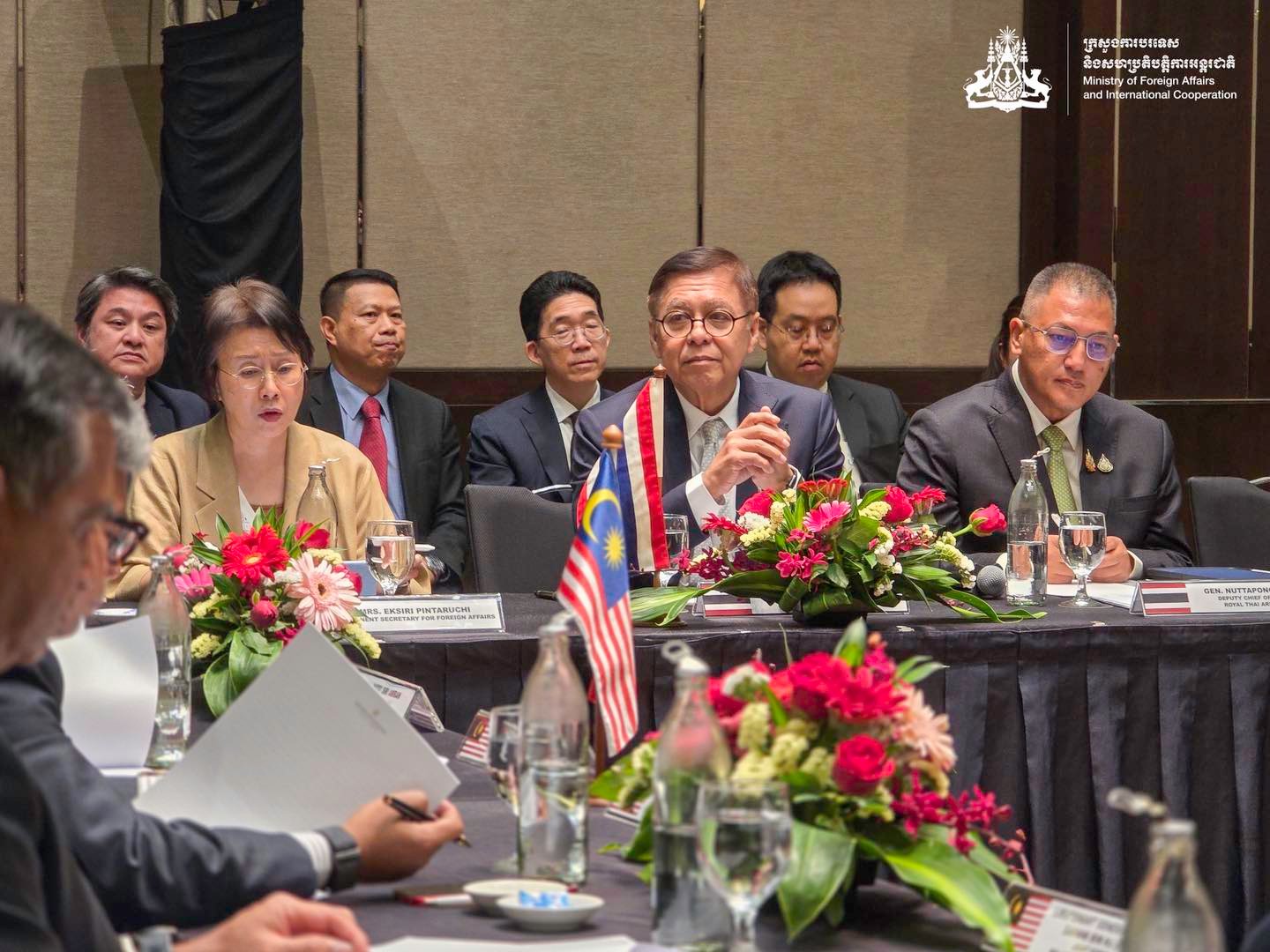 រាជធានីភ្នំពេញ ៖ ឯកឧត្តមឧបនាយករដ្ឋមន្ត្រី ប្រាក់ សុខុន រដ្ឋមន្ត្រីការបរទេស និងសហប្រតិបត្តិការអន្តរជាតិ បានអញ្ជើញចូលរួមកិច្ចប្រជុំចតុភាគី រវាងប្រទេសកម្ពុជា ថៃ ម៉ាឡេស៊ី និងសហរដ្ឋអាមេរិក តាមការអញ្ជើញរបស់នាយករដ្ឋមន្ត្រី នៃប្រទេសម៉ាឡេស៊ី។ អង្គប្រជុំបានបង្ហាញពីបំណងប្រាថ្នារួម ដើម្បីសន្តិភាព និងស្ថិរភាពរវាងកម្ពុជា និងថៃ ។ ការណ៍នេះបានបញ្ជាក់ជាថ្មី នូវការប្តេជ្ញាចិត្តយ៉ាងមុតមាំក្នុងការដោះស្រាយជម្លោះដោយសន្តិវិធី ការមិនប្រើកម្លាំង និងការគោរពច្បាប់អន្តរជាតិ ។