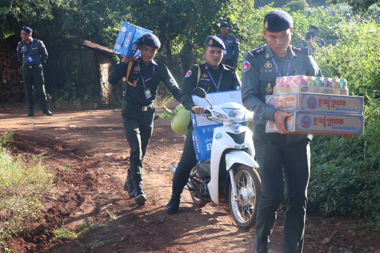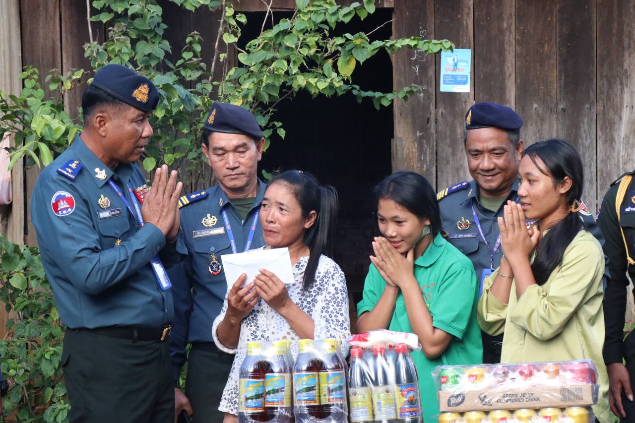 ជាក់ស្តែង នៅរសៀលថ្ងៃទី១៩ ខែតុលា ឆ្នាំ២០២៥ លោកឧត្តមសេនីយ៍ត្រី ហែម បូណារ៉ែល មេបញ្ជាការកងរាជអាវុធហត្ថខេត្តមណ្ឌលគិរី បានដឹកនាំមន្ត្រីក្រោមឱវាទ នាំយកគ្រឿងឧបភោគបរិភោគ និងថវិកាមួយចំនួន ចែកជូនដល់ក្រុមគ្រួសារវីរកងទ័ពនិងវីរនគរបាល ដែលកំពុងបំពេញភារកិច្ចការពារបូរណភាពទឹកដី នៅខ្សែបន្ទាត់ព្រំដែនកម្ពុជា-ថៃ ។