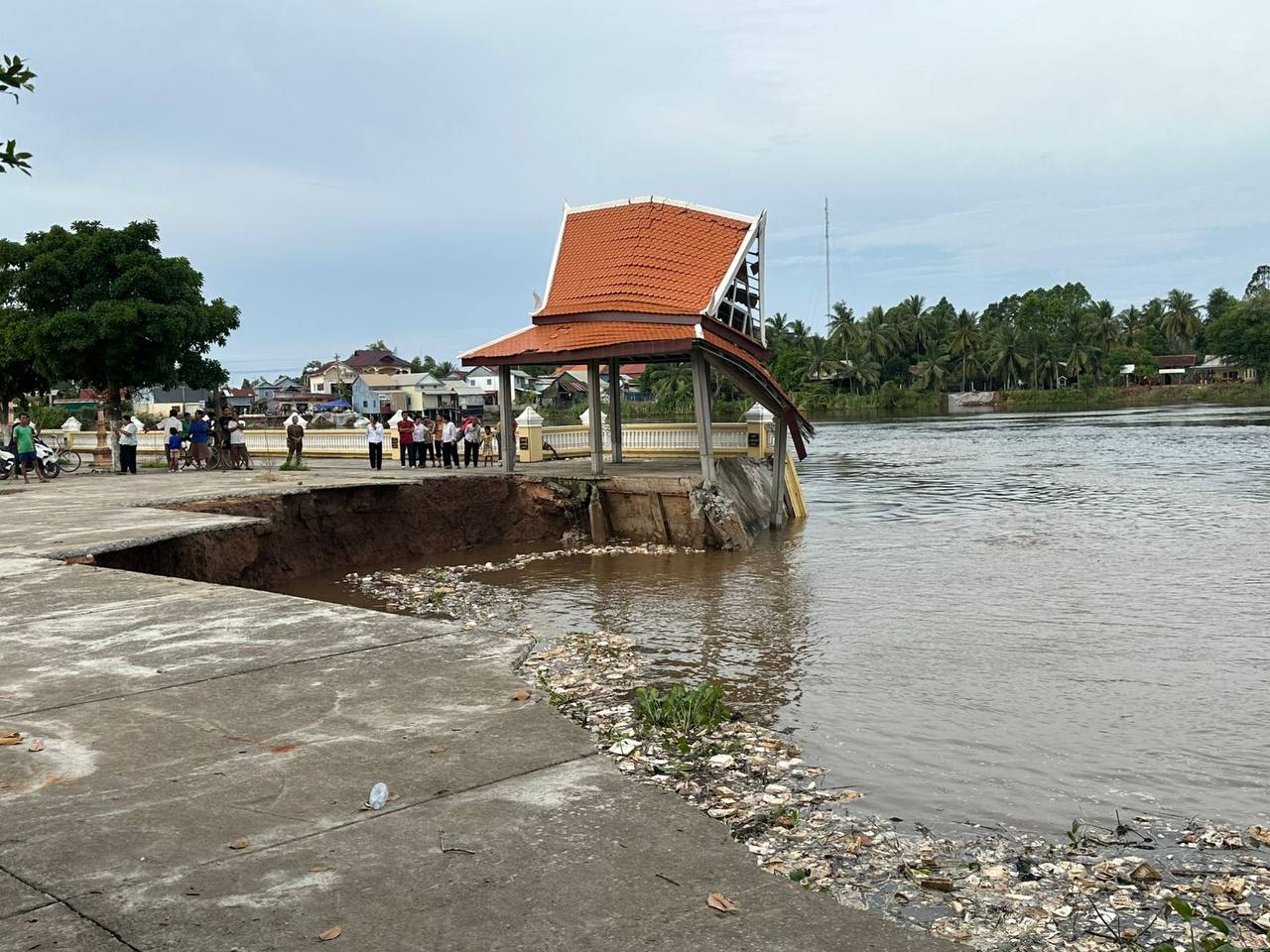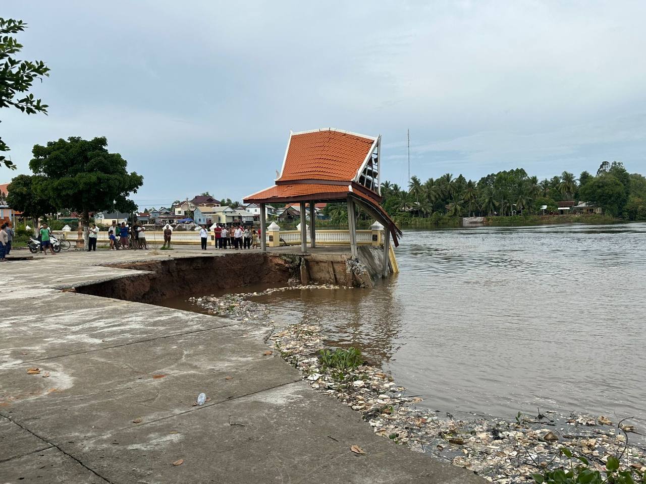 ខេត្តកណ្តាល ៖ របងវត្តជ្រោយ ប៉ែកខាងជើង ជាប់មាត់ព្រែកប្រវែង២០ម៉ែត្រត្រូវបានទឹកហូរគួចបាក់ស្រុតច្រាំង បណ្តាលឲ្យរងការខូចខាត សំណាងល្អក្នុងហេតុការណ៍នេះ គ្មាននរណាម្នាក់ មានគ្រោះថ្នាក់នោះទេ ។…