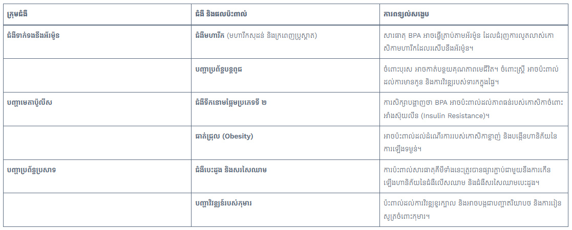 ការប៉ះពាល់ជាប្រចាំទៅនឹងសារធាតុ BPA និង Phthalates អាចរួមចំណែកដល់ការកើតជំងឺធ្ងន់ធ្ងរជាច្រើន៖