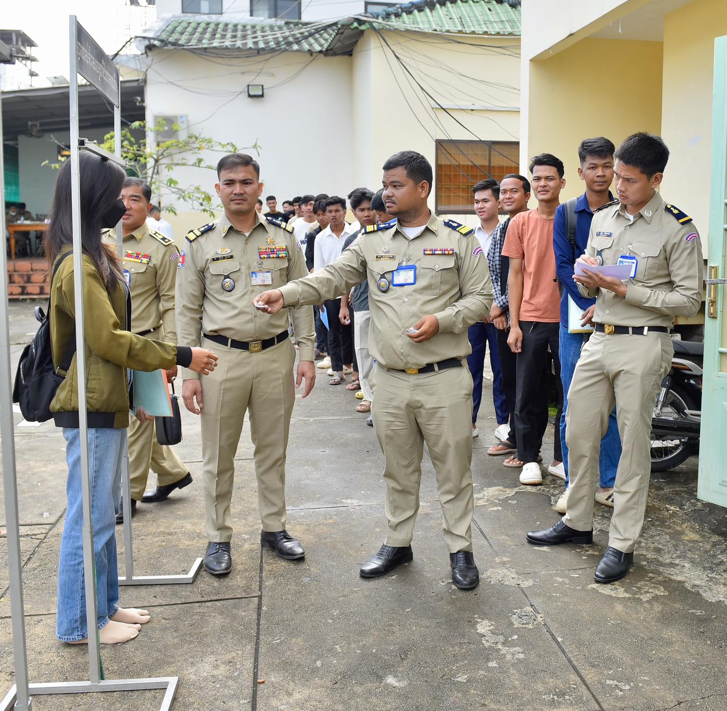 ខេត្តព្រះសីហនុ ៖ នៅព្រឹកថ្ងៃចន្ទ ទី២០ ខែតុលា ឆ្នាំ២០២៥ លោកវរសេនីយ៍ឯក ពៅ ប្រុស ស្នងការរងផែនការងារធនធានមនុស្ស តំណាងដ៏ខ្ពង់ខ្ពស់ឧត្តមសេនីយ៍ឯក អគ្គស្នងការរង និងជាស្នងការនគរបាលខេត្តព្រះសីហនុ និងមានការចូលរួមពីតំណាងអគ្គស្នងការនគរបាលជាតិ តំណាងអគ្គនាយកដ្ឋានធនធានមនុស្ស ដឹកនាំអនុគណៈកម្មការផ្តល់ពាក្យ ដល់បេក្ខជន បេក្ខនារី ប្រឡងប្រជែងជ្រើសរើសក្របខ័ណ្ឌមន្ត្រីនគរបាលជាតិ នៃស្នងការដ្ឋាននគរបាលខេត្តព្រះសីហនុ សម្រាប់ឆ្នាំ២០២៥ ចាប់ផ្តើមអនុវត្តពីព្រឹកថ្ងៃទី២០ ដល់ថ្ងៃទី២៤ ខែតុលា ឆ្នាំ២០២៥ តទៅ នៅការិយាល័យបុគ្គលិក នៃស្នងការដ្ឋាននគរបាលខេត្តព្រះសីហនុ ដំណើរការផ្តល់ពាក្យ ប្រឡងប្រជែងជ្រើសរើសក្របខ័ណ្ឌមន្ត្រីនគរបាលជាតិប្រព្រឹត្តទៅយ៉ាងរលូន ពុំមានអ្វីកើតឡើងឡើយ ៕
