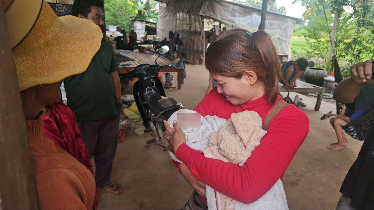 ម្ចាស់ផ្ទះទាំងពីរនាក់ប្ដី-ប្រពន្ធ បាននាំទារិកានេះទៅឱ្យគ្រូពេទ្យស្រុកបន្ទាយមាសជួយសម្អាត ព្រោះទារិកានេះ ត្រូវបានម្ដាយសម្រាលហើយក៏យកមកប្លុងឱ្យតែម្ដង ព្រោះប្រឡាក់ឈាមស្រស់ៗ ហើយត្រូវបានគ្រូពេទ្យចងផ្សិតតាមបច្ចេកទេសពេទ្យ ។