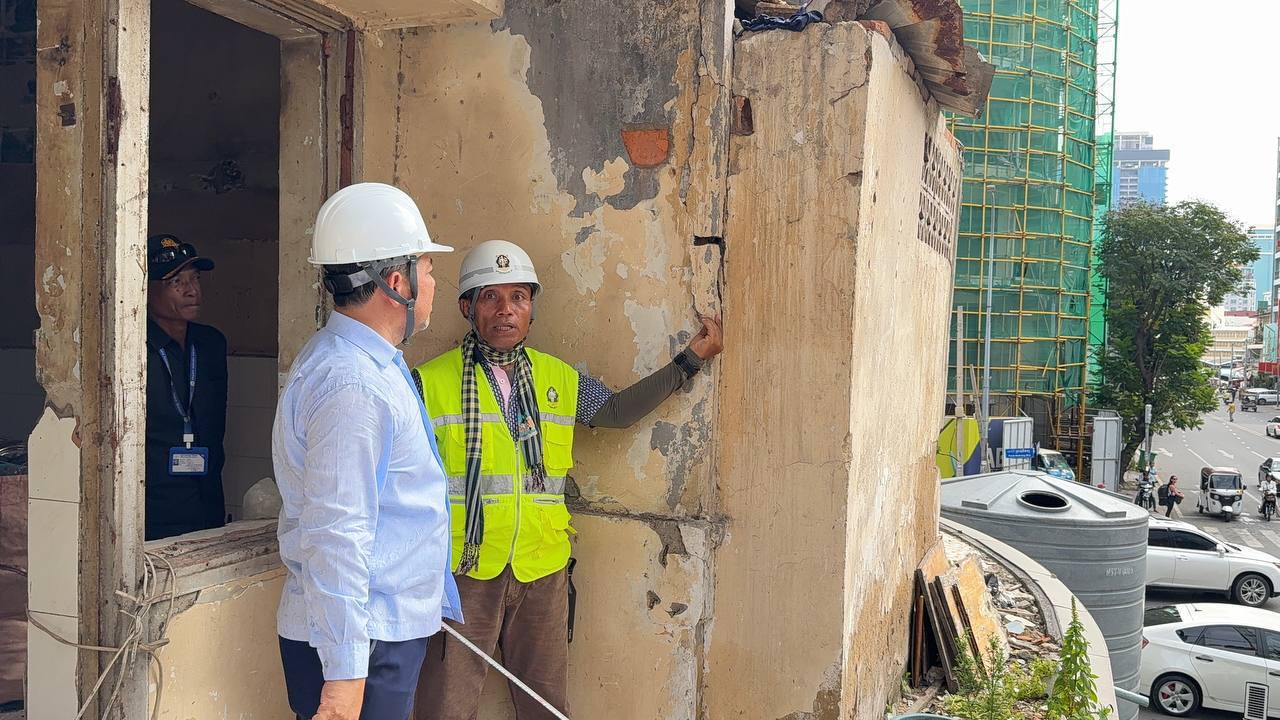 រាជធានីភ្នំពេញ ៖ បន្ទាប់ពីមន្ត្រីជំនាញនៃក្រសួងរៀបចំដែនដី នគរូបនីយកម្ម និងសំណង់ និងគណៈអភិបាលខណ្ឌ៧មករា ធ្វើពិធី«ក្រុងពាលី»សុំសេចក្តីសុខពីម្ចាស់ទឹកម្ចាស់ដីជាផ្លូវការ រួចមក កាលពីព្រឹកថ្ងៃទី២១ ខែតុលា ឆ្នាំ២០២៥ លោកអភិបាលខណ្ឌ៧មករាបានដឹកនាំមន្ត្រីជំនាញទៅពិនិត្យការដ្ឋានអគារអតីត «សណ្ឋាគារអង្គរមានជ័យ» ដែលអ្នកបច្ចេកទេសកំពុងវាយកម្ទេចជាបណ្តើរៗ ។