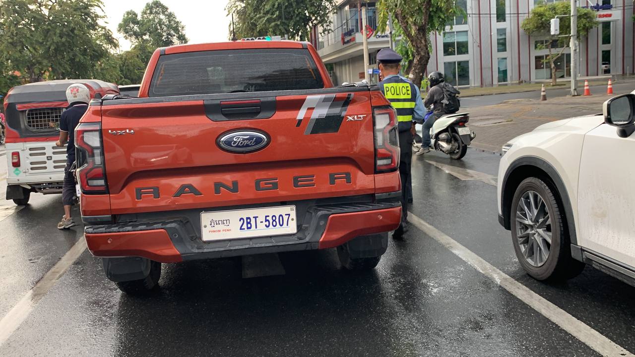 រាជធាំនីភ្នំពេញ ៖ បុរសម្នាក់បើករថយន្ត១គ្រឿងម៉ាកFORD RANGER ពណ៍ទឹកក្រូច ពាក់ស្លាកលេខ ភ្នំពេញ ២BT-៥៨០៧ ស៊េរីឆ្នាំ២០២៣ សង្ស័យបើកបរមកពីឆ្ងាយ លុះដល់ចំណុចភ្លើងស្តុប ក៏បានឈប់រថយន្តគោរពច្បាប់ចរាចរណ៍ ស្រាប់តែដេកលង់ទាំង៣នាក់ក្នុងរថយន្តជិត១ម៉ោង បង្កការកកស្ទះចរាចរណ៍យ៉ាងខ្លាំង និងបង្កការភ្ញាក់ផ្អើលដល់សមត្ថកិច្ចចុះអន្តរាគមន៍គោះកញ្ចក់យ៉ាងយូរ ទើបភ្ញាក់ដឹងខ្លួន ហើយសមត្ថកិច្ចណែនាំបើករថយន្តអែបនៅខាង និងសម្រាកសិន តែអ្នកបើកបរថា មិនអីទេ រួចក៏បន្តដំណើរទៅមុខបានប្រហែល២០០ម៉ែត្រ ក៏ទៅបុកដើមគគីរយ៉ាងពេញទំហឹង បណ្ដាលឱ្យខូចខាតរថយន្ត ។