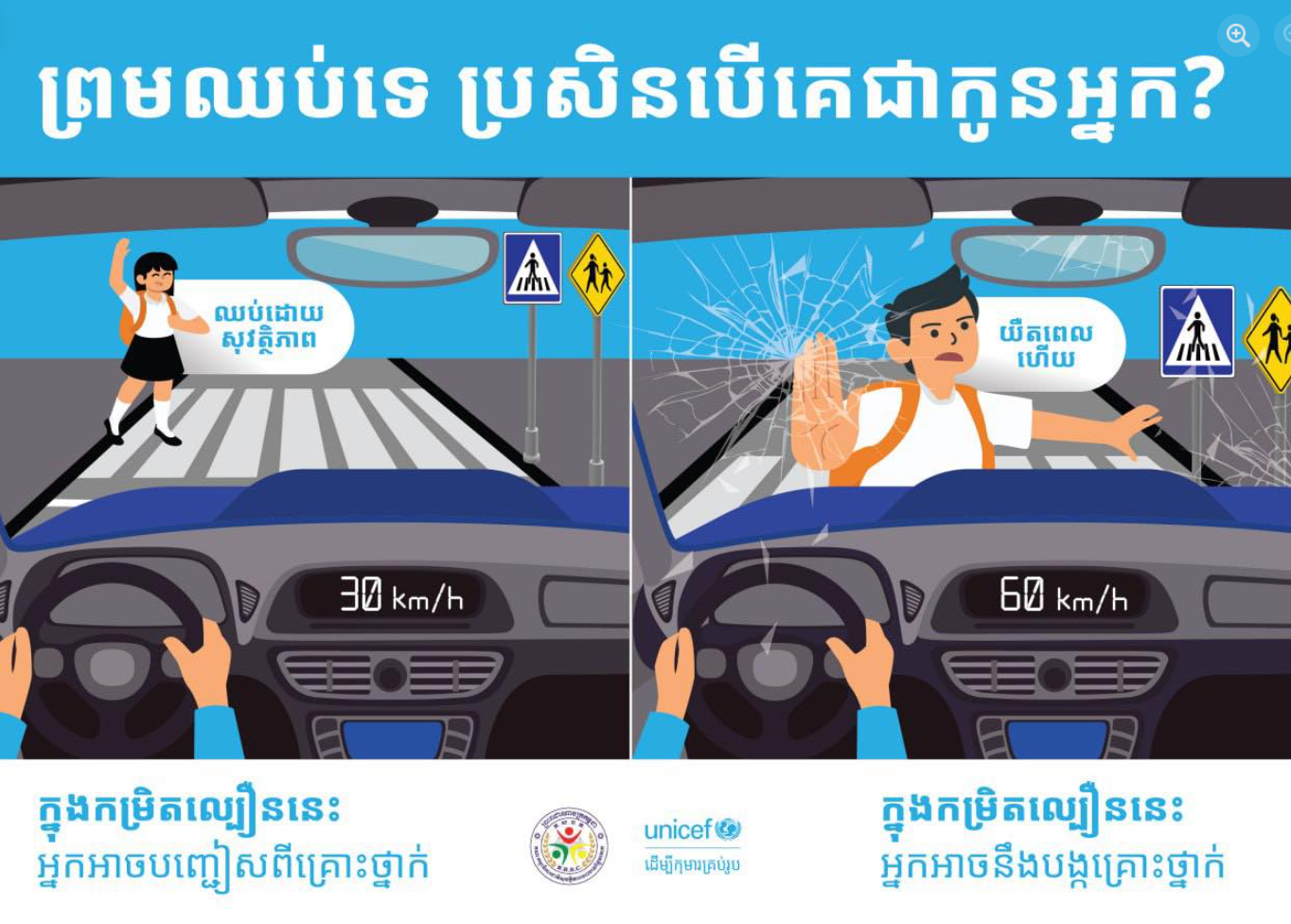 សុវត្ថិភាពចរាចរណ៍ផ្លូវគោកនេះ គឺជាការរំឭកដ៏សំខាន់ និងមុតស្រួចមួយ ទៅកាន់អ្នកបើកបរទាំងអស់អំពីឥទ្ធិពលនៃល្បឿនទៅលើលទ្ធផលនៃគ្រោះថ្នាក់ចរាចរណ៍ ជាពិសេសនៅតំបន់ងាយរងគ្រោះដូចជា នៅតំបន់សាលារៀន ឬកន្លែងដែលមានមនុស្សឆ្លងកាត់ ។